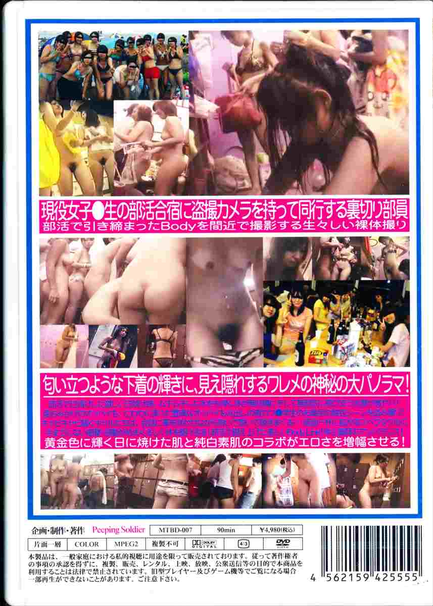 現役女子○生の部活合宿を隠し撮り第7弾。春合宿に来た女子たちは、旅行感覚でハシャギまくり。部活で日に焼けた肌が目前に迫る満足感溢れるリアル。大中小の様々なオッパイ群、陰毛剛毛薄毛のデルタ地帯。部員の中の裏切り者によって全て晒される。部活で引き締まったBODYを間近で撮影する生々しい裸体撮り。匂い立つような下着の輝きに、見え隠れするワレメの神秘の大パノラマ。黄金色に輝く日に焼けた肌と純白素肌のコラボがエロさを増幅させる。