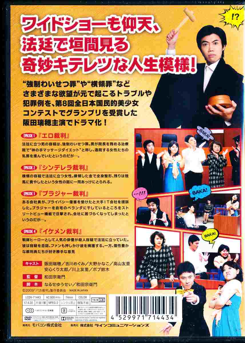 強制猥褻罪’や’横領罪’など様々な欲望が元で起こるトラブルや犯罪例を、第8回全日本国民的美少女コンテストでグランプリを受賞した阪田瑞穂主演でドラマ化。「エロ裁判」「シンデレラ裁判」「ブラ裁判」「イケメン裁判」の全4話を収録。