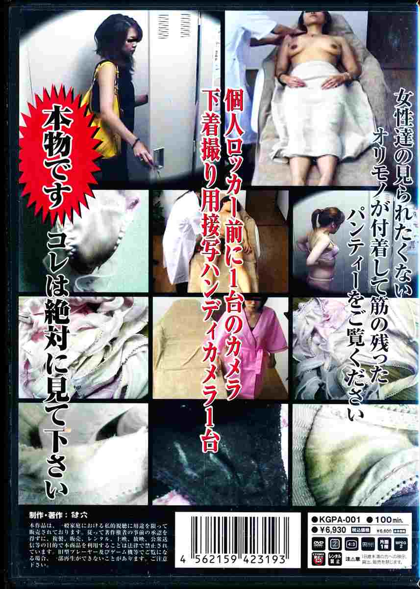 個人ロッカーの中、使用済みパンティー盗撮。穴を見ると覗かずにはいられない抑えきれない男の性(サガ)。鍵穴の向こうに垣間見える女性のあられもない姿を映像に収録。個人ロッカー前に1台のカメラ、下着撮り用接写ハンディカメラ1台。女性の見られたくないオリモノが付着して筋の残ったパンティーをご覧ください。