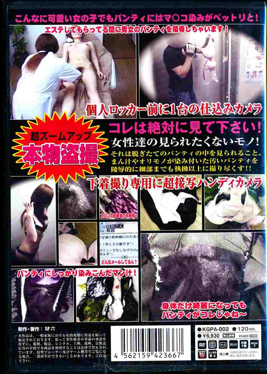個人ロッカーの中、使用済みパンティー盗撮。穴を見ると覗かずにはいられない抑えきれない男の性(サガ)。鍵穴の向こうに垣間見える女性のあられもない姿を映像に収録。個人ロッカー前に1台のカメラ、下着撮り用接写ハンディカメラ1台。女性の見られたくないオリモノが付着して筋の残ったパンティーをご覧ください。