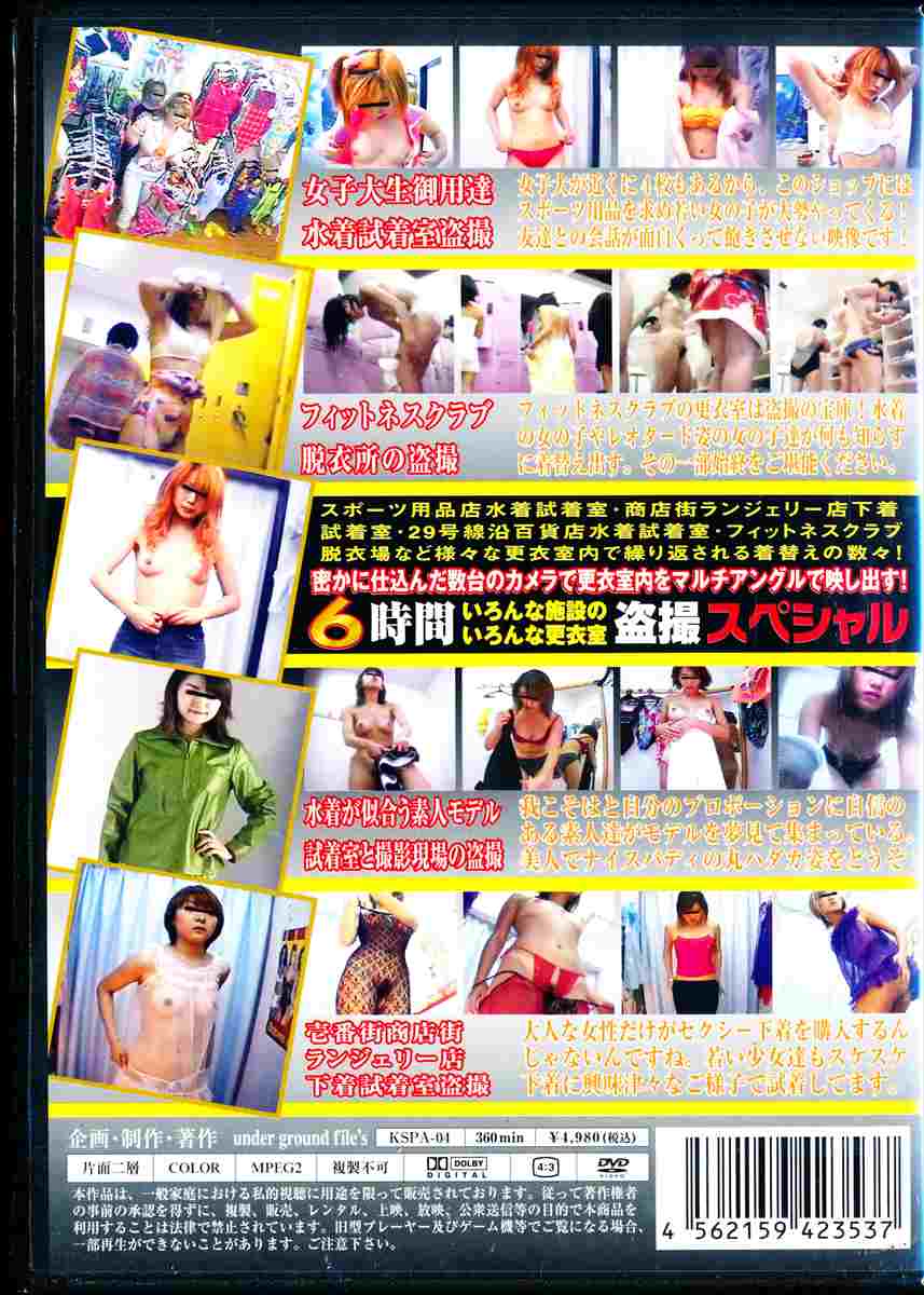 日本全国に暗躍する盗撮グループの中の5グループとのアポ取りに成功し接触を試みた。交渉の末に我々はアンダーグラウンドで取引されている盗撮映像の入手に成功。女子大生御用達水着試着室盗撮。フィットネスクラブ脱衣所の盗撮。水着が似合う素人モデル試着室と撮影現場の盗撮。壱番街商店街ランジェリー店の下着試着室盗撮。いろんな施設のいろんな更衣室盗撮360分。