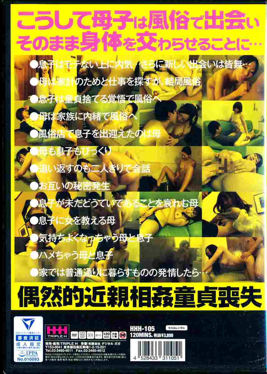 ある意味ホント!!偶発!!近親相姦!!息子はモテない上に内気…さらに新しい出会いは皆無…母は家計のためと仕事を探すが、結局風俗…息子は童貞捨てる覚悟で風俗へ…風俗店で息子を出迎えたのは母。こうして母子は風俗で出会いそのまま身体を交わらせることに…。