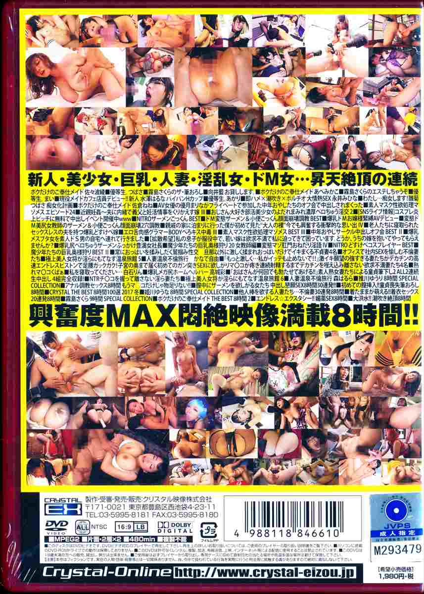 クリスタル映像より2017年12月から2018年2月の間にリリースされた57タイトルから100コーナーを大収録。雛菊つばさ、佐々波綾、美谷朱里ら、多数の美女が見せたバリエーション豊かな痴態をご覧あれ。