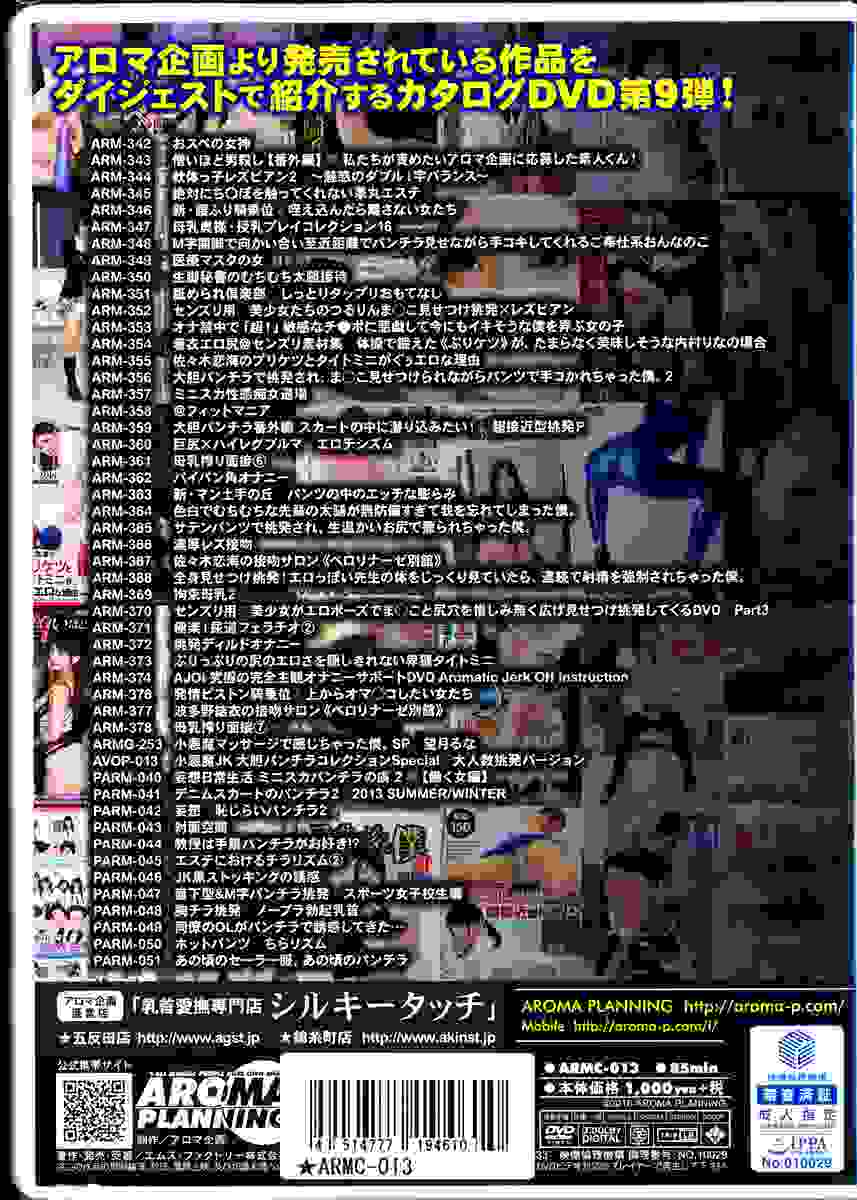 アロマ企画からリリースされた作品をダイジェスト映像で紹介するカタログDVD第9弾。フェチ作品に定評がある同社が自信を持って送り出した作品が満載。50タイトルから見どころ&ヌキどころを厳選。