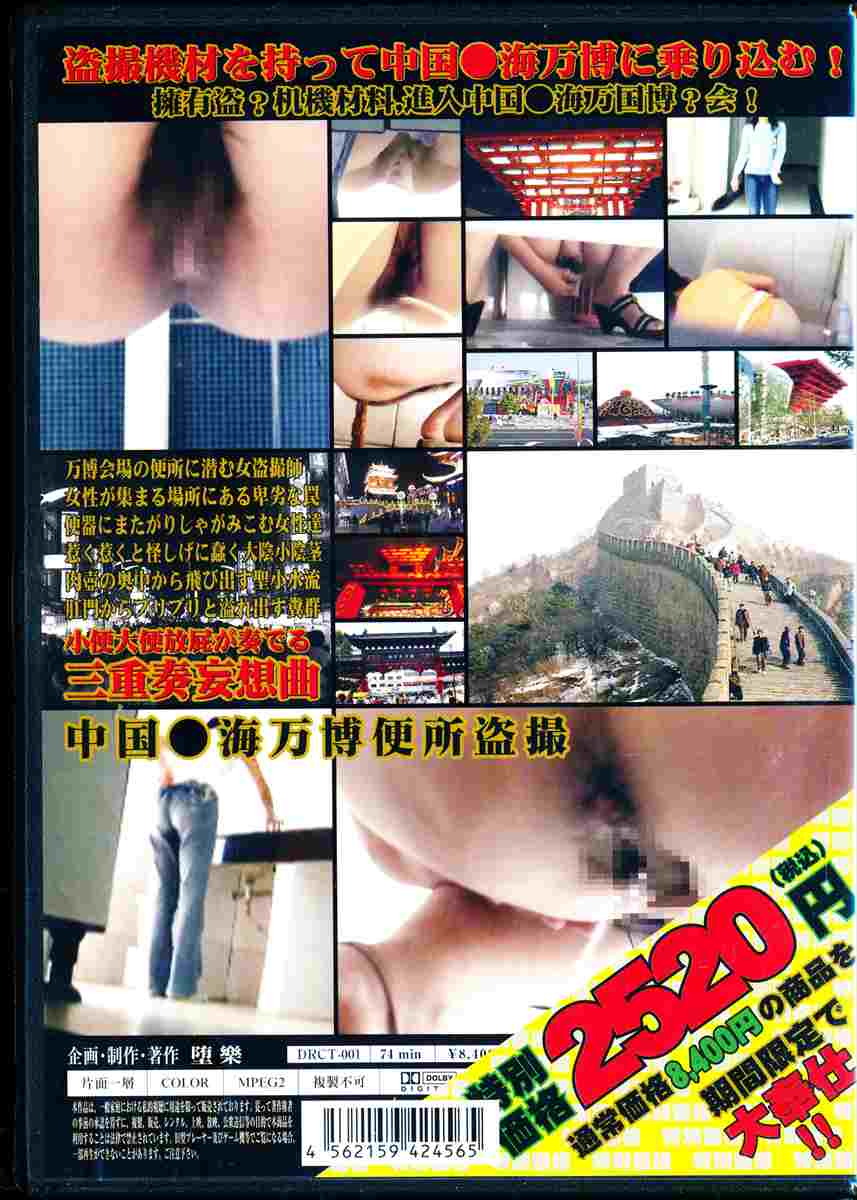 盗撮機材を持って中国○海万博に乗り込む。万博会場の便所に潜む女盗撮師。女性が集まる場所にある卑劣な罠。便器にまたがりしゃがみこむ女性達。ひくひくと怪しげに蠢く大陰小陰唇。肉壷の奥中から飛び出す聖小水流。肛門からブリブリと溢れ出す糞群。小便大便放屁の三重奏妄想曲。