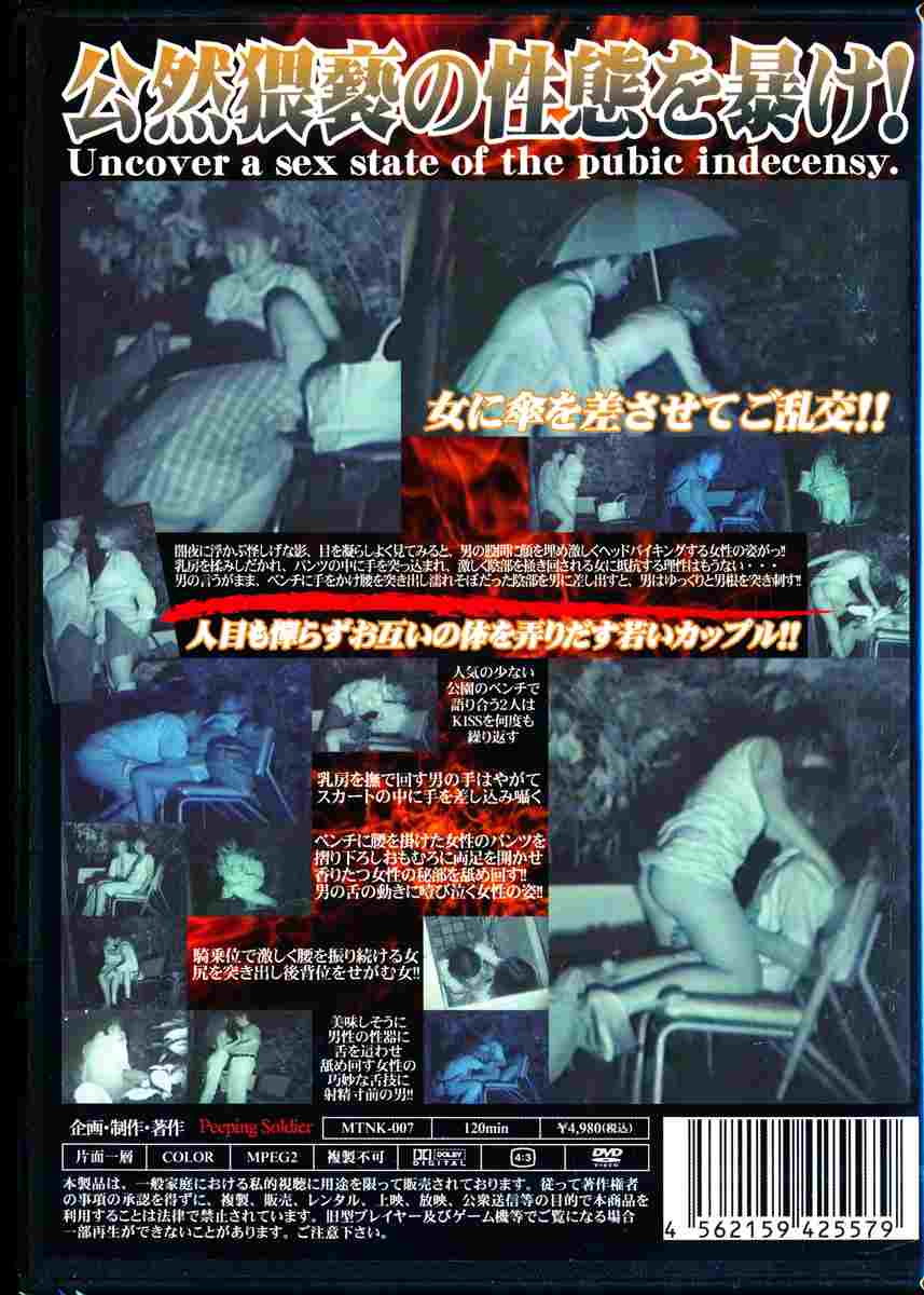エッチを我慢できないカップルは人目を気にしながらも己の欲望を抑えることができない。人気の少ない公園のベンチで語り合う2人はKISSを何度も繰り返す。乳房を撫で回す男の手はやがてスカートの中に手を差し込み囁く。ベンチに腰を掛けた女性のパンツを摺り下ろし、おもむろに両足を開かせ香りたつ女性の秘部を舐め回す。男の舌の動きに咽び泣く女性。騎乗位で激しく腰を振り続ける女。尻を突き出し後背位をせがむ女。美味しそうに男性の性器に舌を這わせ舐め回す女性の巧妙な舌技に射精寸前の男。人目も憚らずお互いの体を弄りだす若いカップル。公然猥褻の性態を暴け。