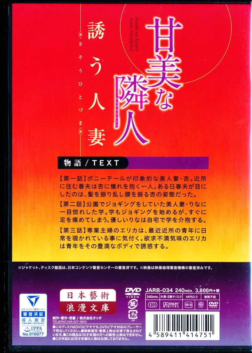 第一話:ポニーテールが印象的な美人妻・杏。近所に住む春夫は杏に憧れを抱く一人。ある日春夫が目にしたのは、髪を振り乱し腰を振る杏の姿態だった。第二話:公園でジョギングをしていた美人妻・りなに一目惚れした学。学もジョギングを始めるが、すぐに足を痛めてしまう。優しいりなは自宅で学を介抱する。他、全3話収録。