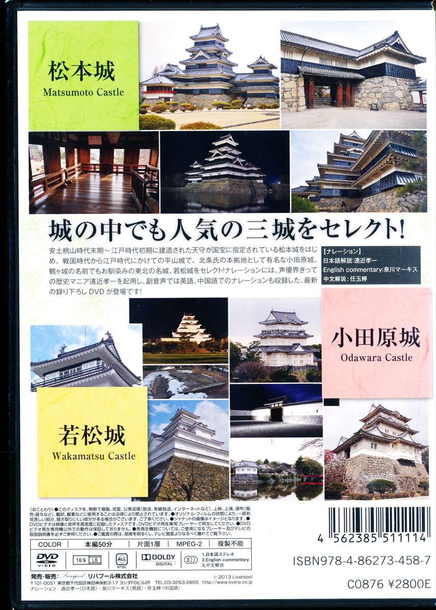 全国の名城を紹介するDVD。安土桃山時代末期から江戸時代初期に建造された天守が国宝に指定されている松本城をはじめ、北条氏の本拠地として有名な小田原城、鶴ヶ城の名前でもお馴染みの東北の名城・若松城の3城をセレクトし、その魅力に迫る。