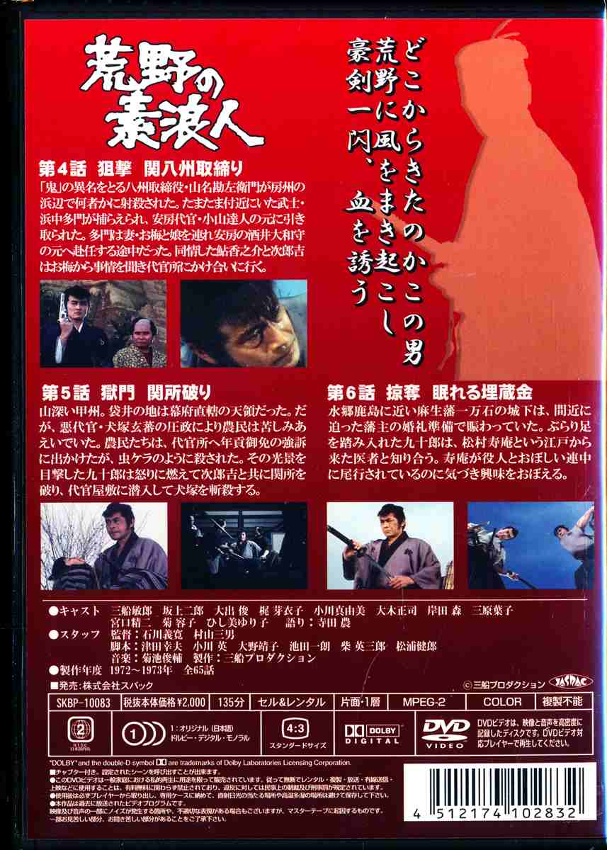 三船プロ制作によるTV時代劇の最高傑作と評され、昭和史に名を残す人気アクションシリーズ第2巻。映画『椿三十郎』の三十郎より3倍強いという触れ込みの無敵の素浪人・峠九十郎の活躍を描く。第4話「狙撃 関八州取締り」から第6話を収録。