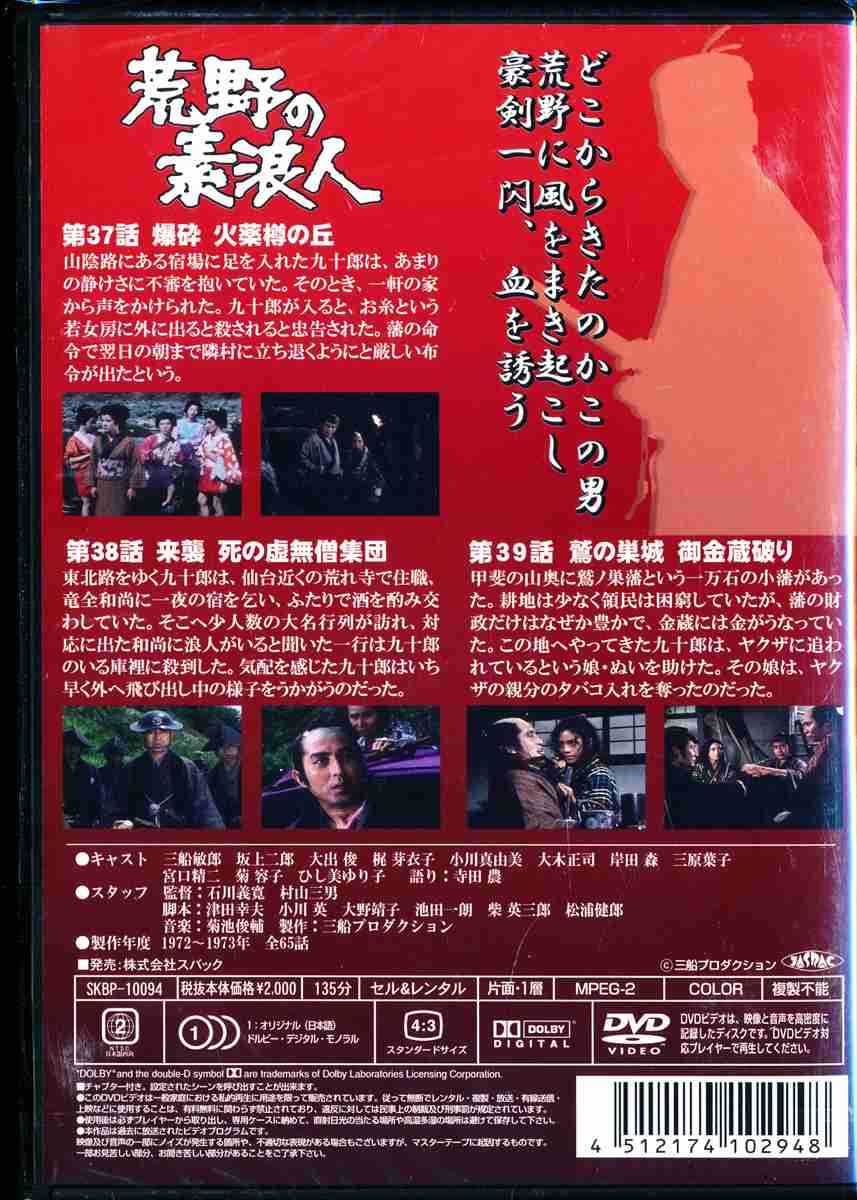 三船敏郎演じる凄腕の素浪人が活躍する姿を描いたアクション時代劇第13巻。山陰路にある宿場に足を入れた九十郎は、あまりの静けさに不審を抱いていた。その時、とある1軒の家の前で声を掛けられる。第37話「爆砕 火薬樽の丘」から第39話を収録。