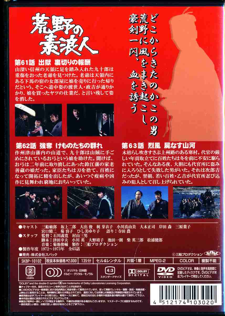三船敏郎演じる凄腕の素浪人が活躍するアクション時代劇第21巻。山深い信州の天領に足を踏み入れた九十郎は、重傷を負った老爺を見付ける。老爺は女郎屋に娘を売りに行った帰りだと言う。第61話「出獄 裏切りの報酬」から第63話を収録。