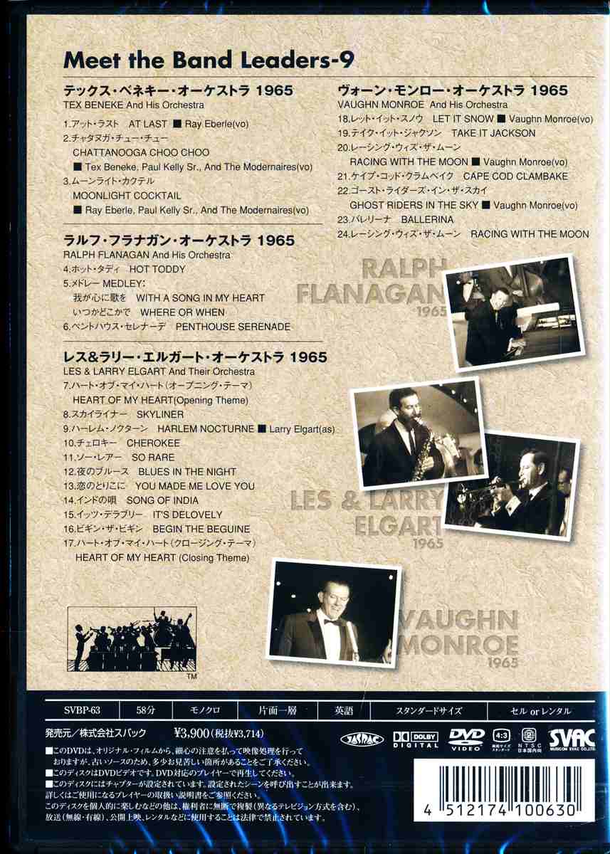人気ジャズバンドのリーダーとそのステージを紹介するシリーズ第9弾。グレン・ミラー楽団で活躍したテックス・ベネキー、「Singing Winds」で親しまれたラルフ・フラナガンら個性的なスタイルで一世を風靡した4バンドの演奏を楽しめる。