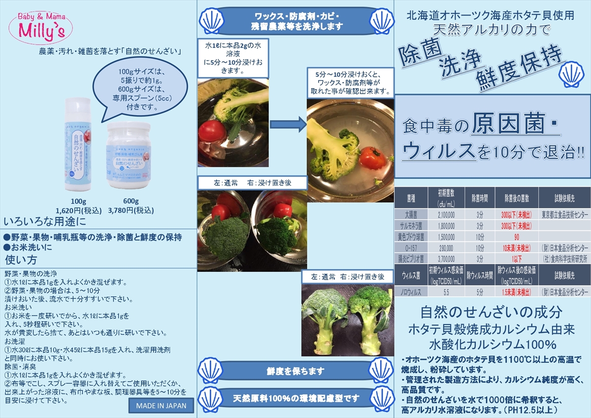 100%オーガニックの洗剤です。食べ物の洗浄から衣類の選択まで、何にでも安心して使えます。赤ちゃんや体の弱い方へも安心して使用できます。