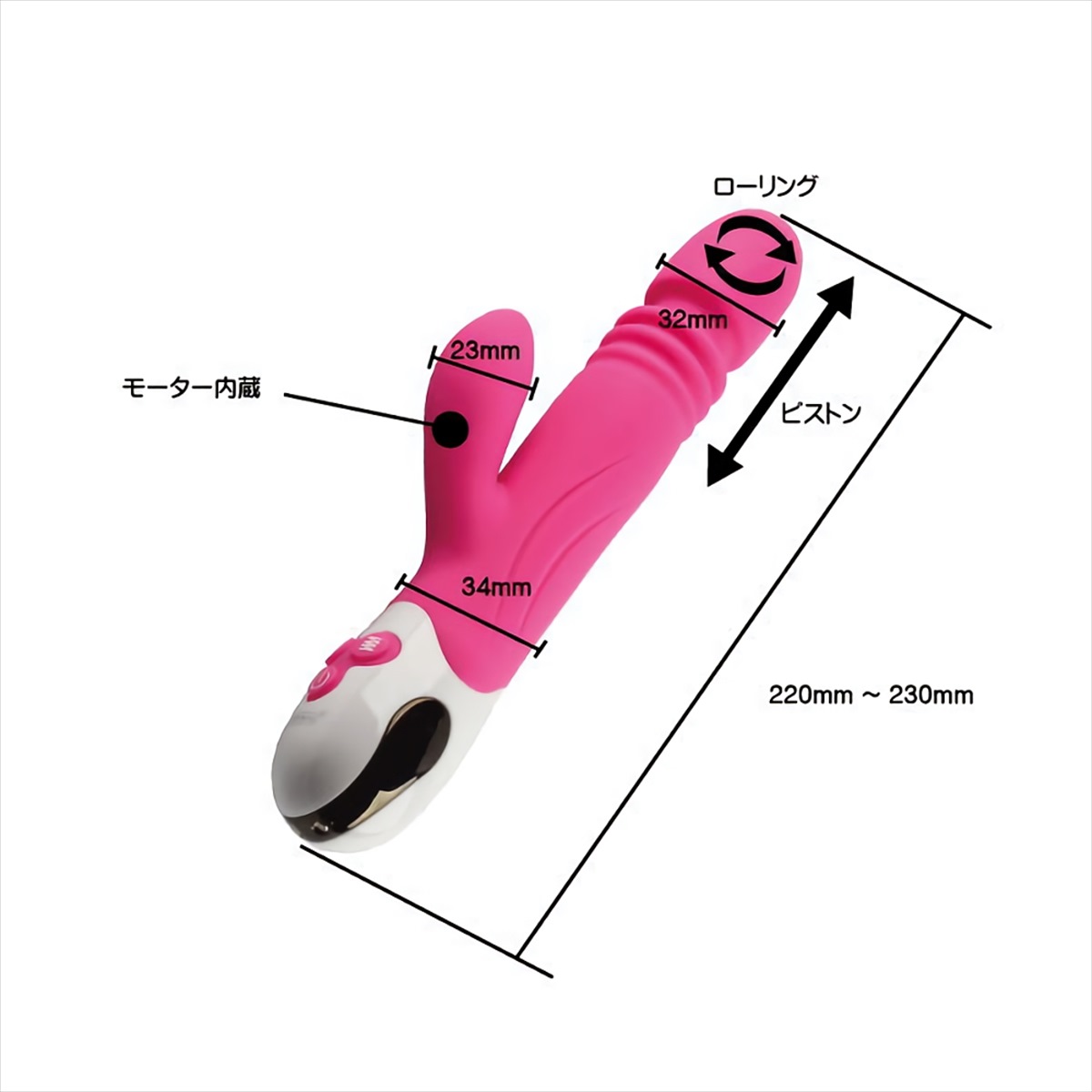 USB充電ケーブル・専用保管袋・日本語の取説付属。先端部分に内蔵されているパールがグルグル回転(ローリング)しながら刺激し、上下に激しく動くピストン機能搭載で奥までズンズン突き上げます。ローリング&ピストンのスピードは3段階、子機のバイブレーションは12種類。