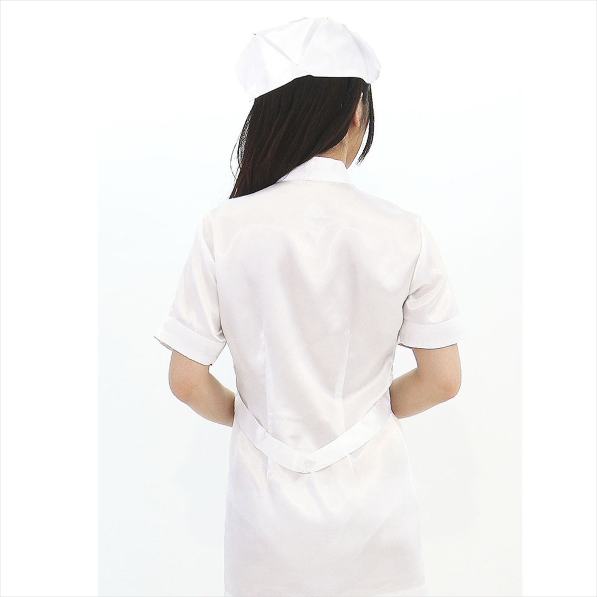光沢サテン生地を使用。なめらかな手ざわりが魅力のホワイトナース