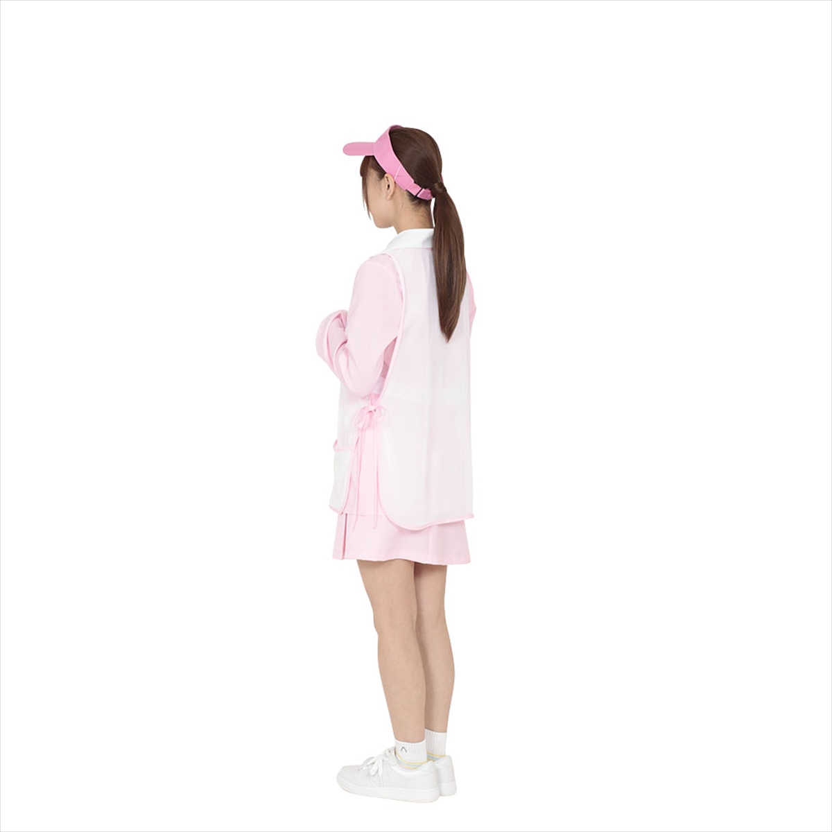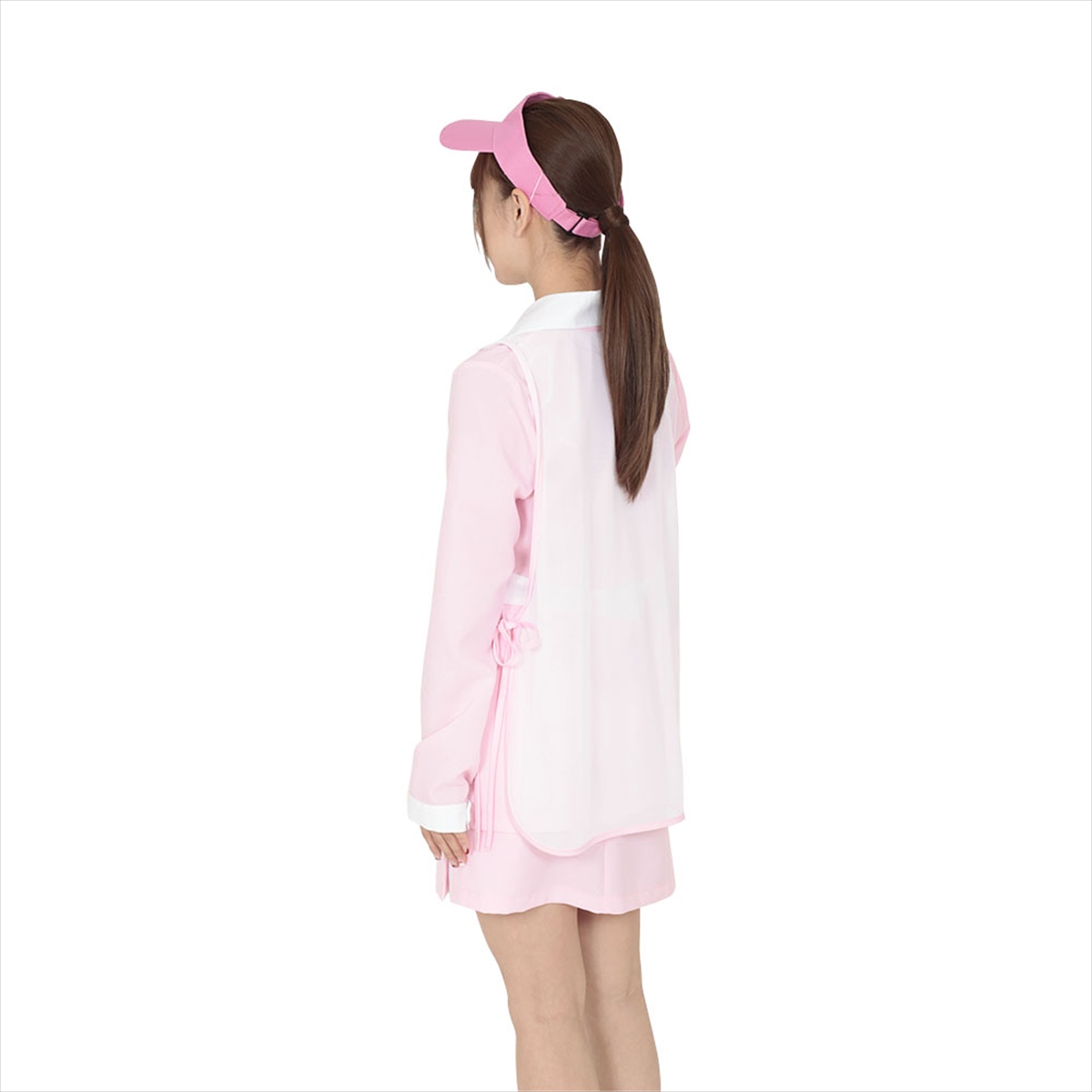 「途中までスコアが並んでいましたが、終盤にしっかり連続バーディを奪うところはさすがですね。」ゴルフが楽しくなる本物仕様のキャディーコスチューム。サイズ調整可能なサンバイザー、長袖上着、サイドが白のボックススカート、ボールやタオル収納可能な3つのポケット付きネット素材ビブスの4点セット。チップ弾みたくなること間違いナシ!