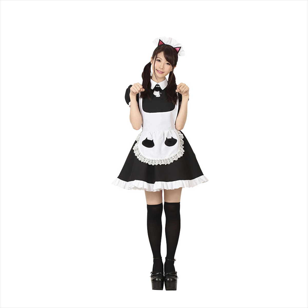 家内安全を招く黒猫を全面に押し出しだした猫型メイド。ショート丈スカートにキュっと絞れるエプロンでスタイルもよく見えちゃうキャット仕様!?