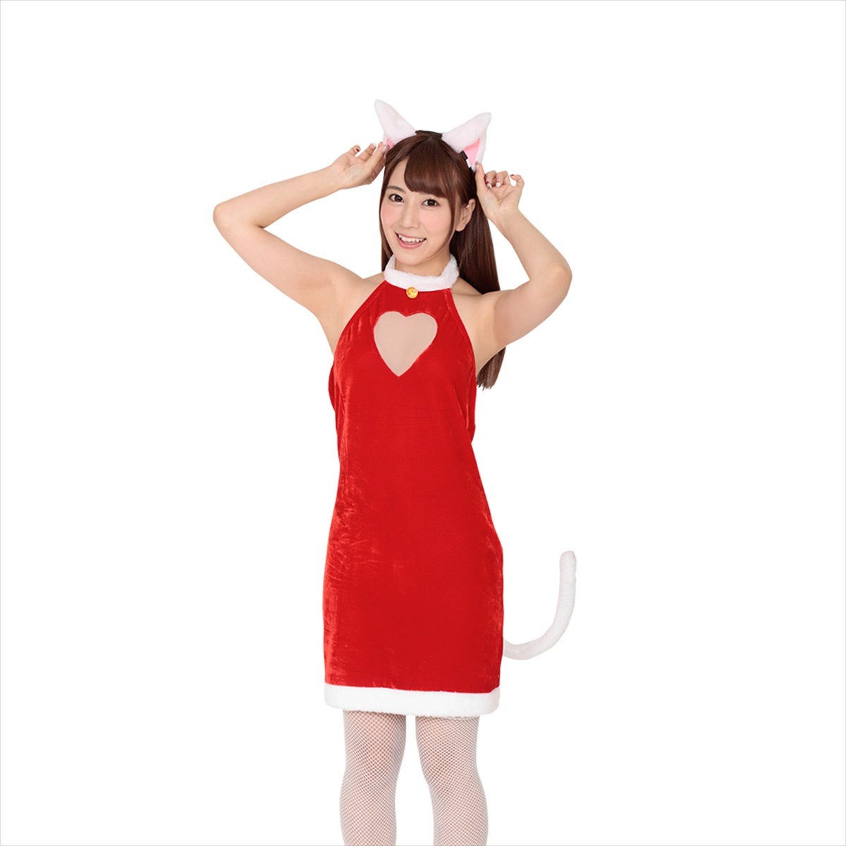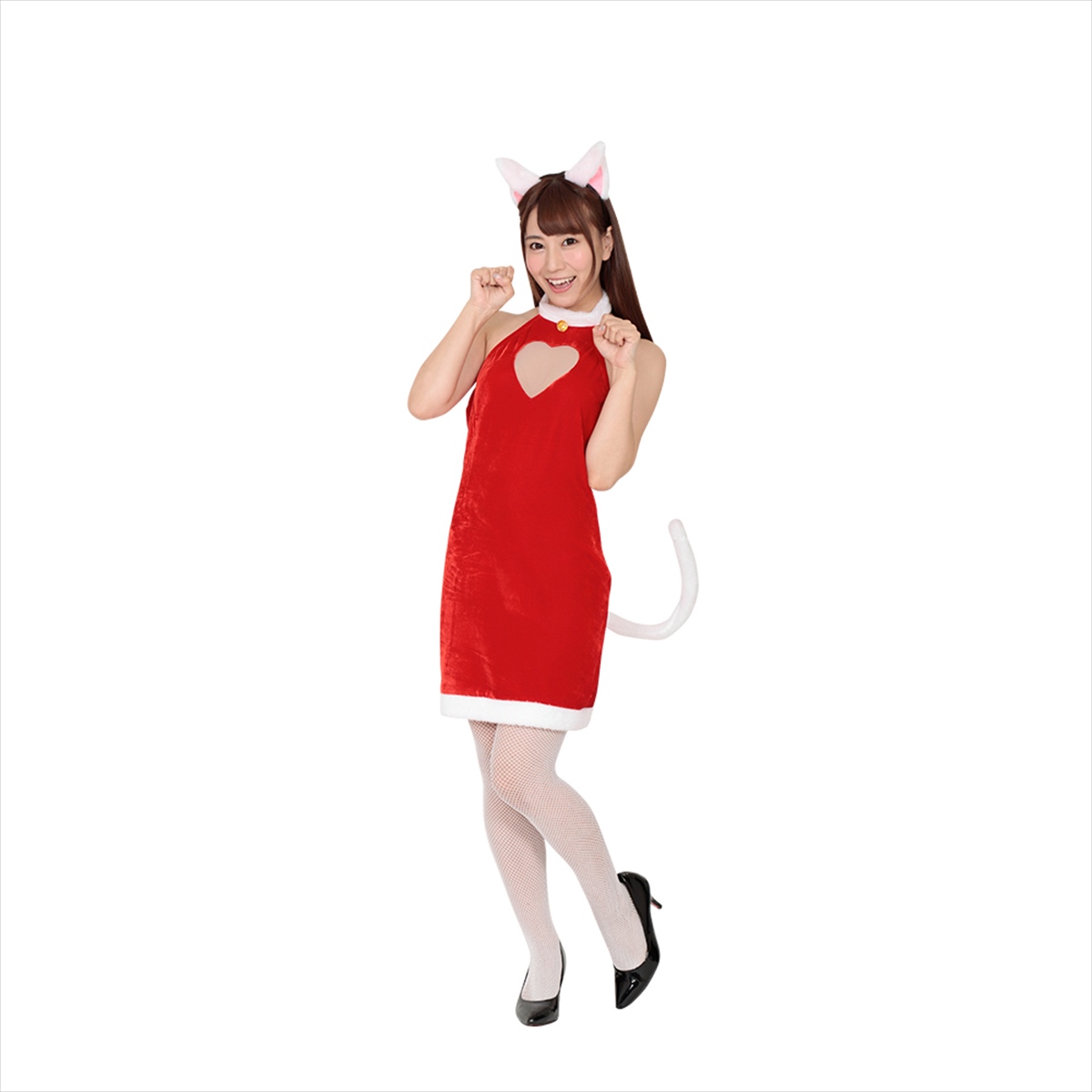 ちょっと長めの尻尾が特徴的!一枚で着れるワンピースタイプにハートの胸開きがセクシー!猫まっしぐらのキャットサンタコスチューム