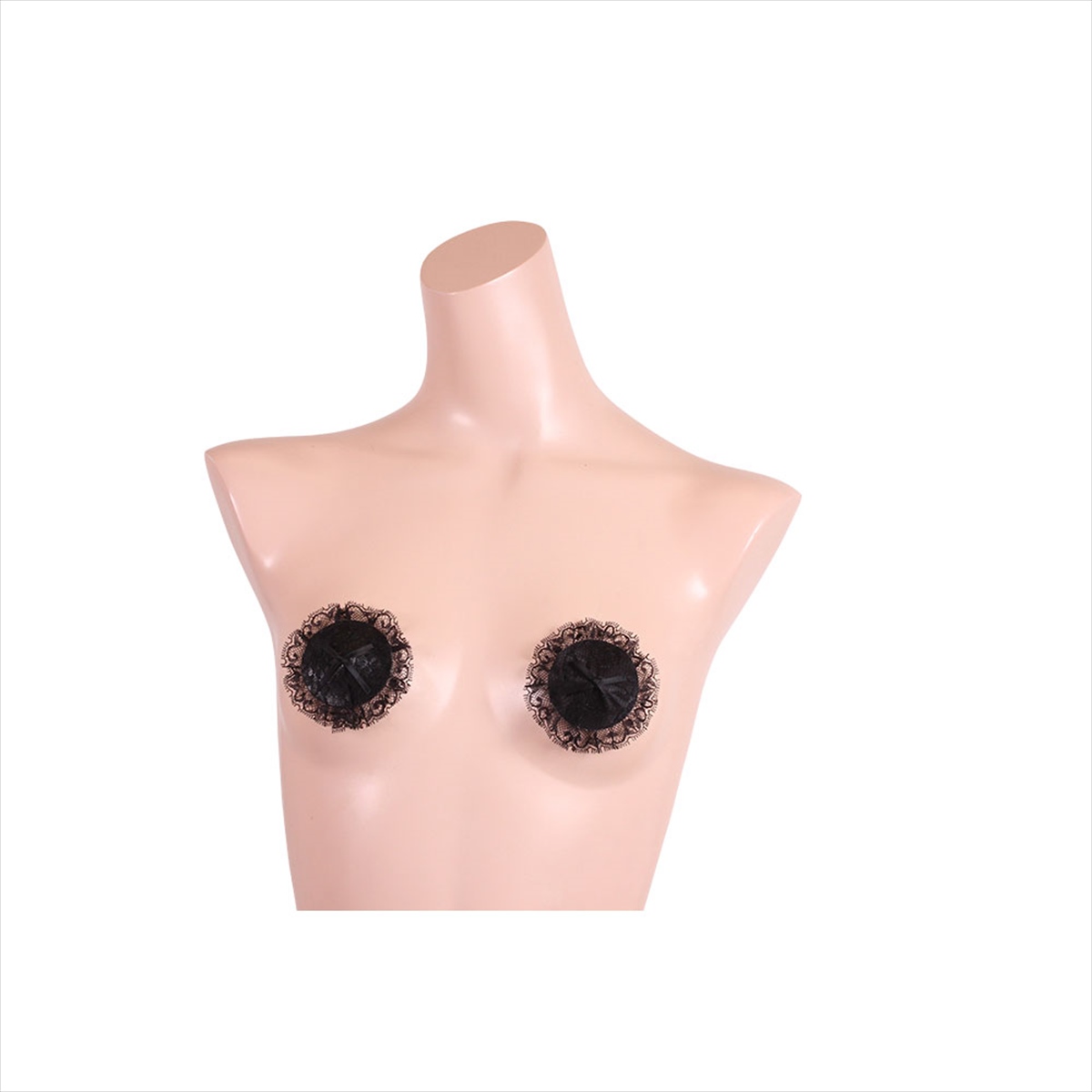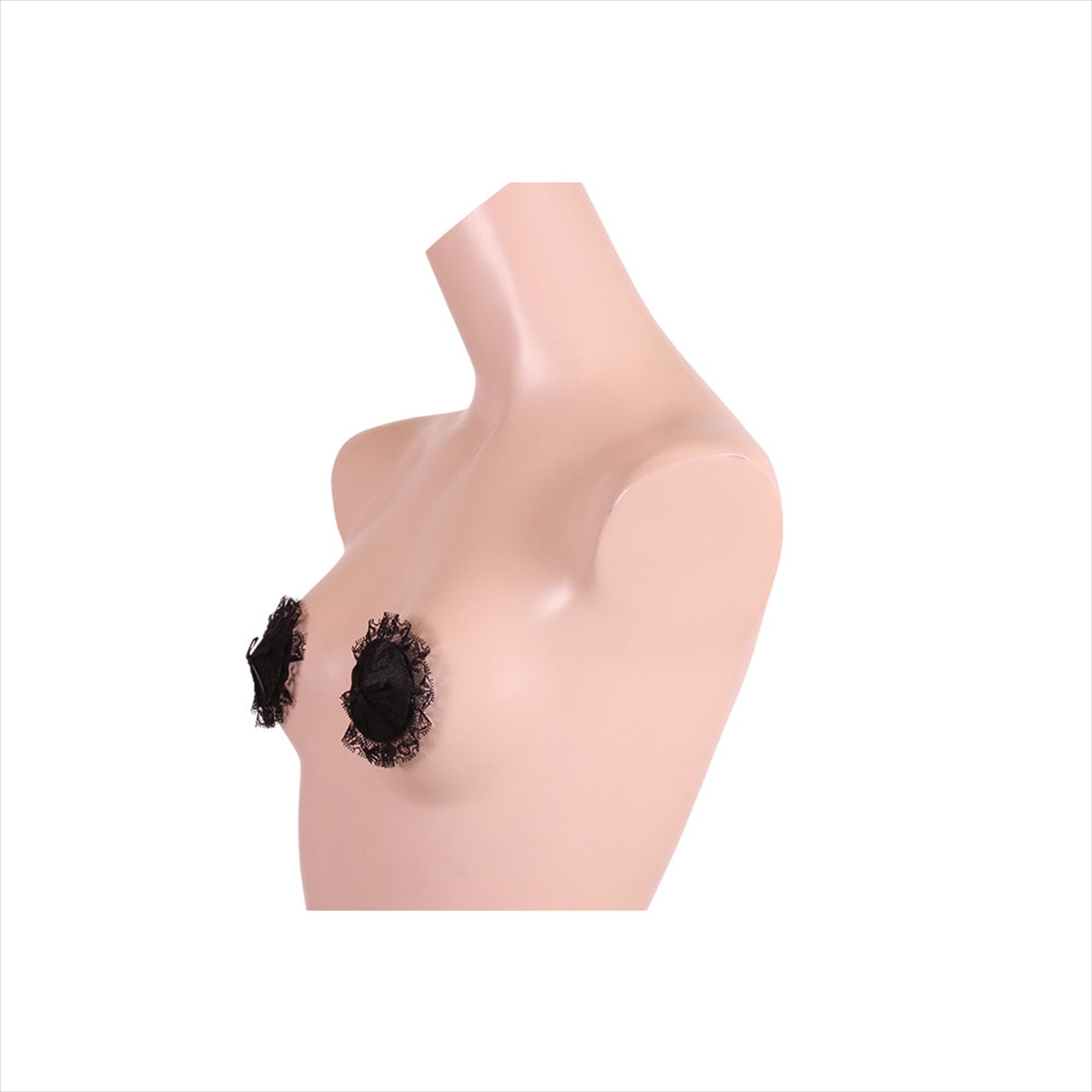 見せることを前提にした高級感のある黒レースと華奢なサテンリボンがついたニップレス。繰り返し使えます。サイズ詳細:装着部分直径5cm レース部分直径8cm