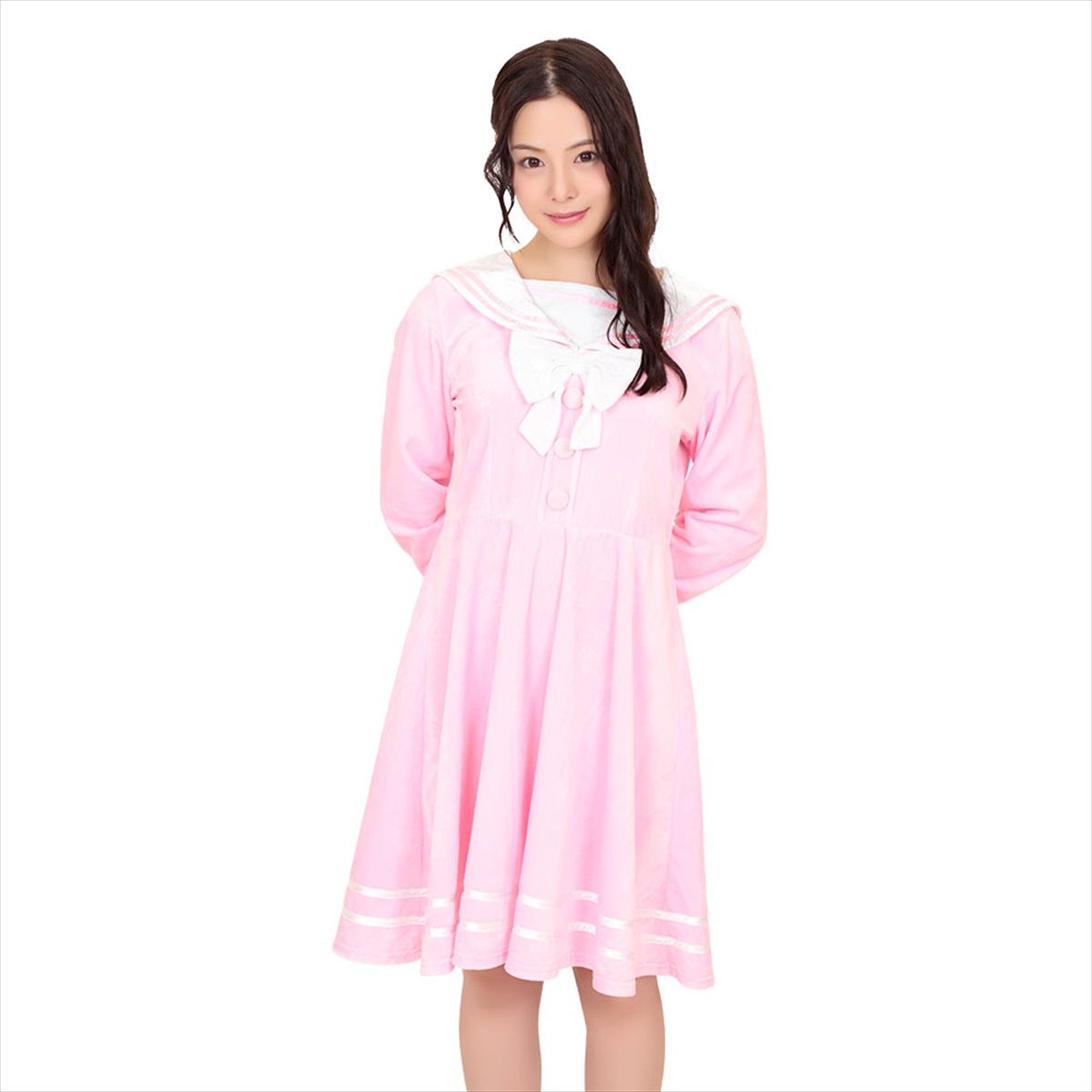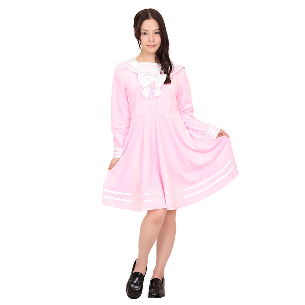 ゆったりラフに着れるセーラー制服型タオル地のワンピースアイテム。ベルベッド風の生地感で冷房対策にも◎ お家時間からワンマイルウエアとしても活躍してくれます。女子会でも大人気!