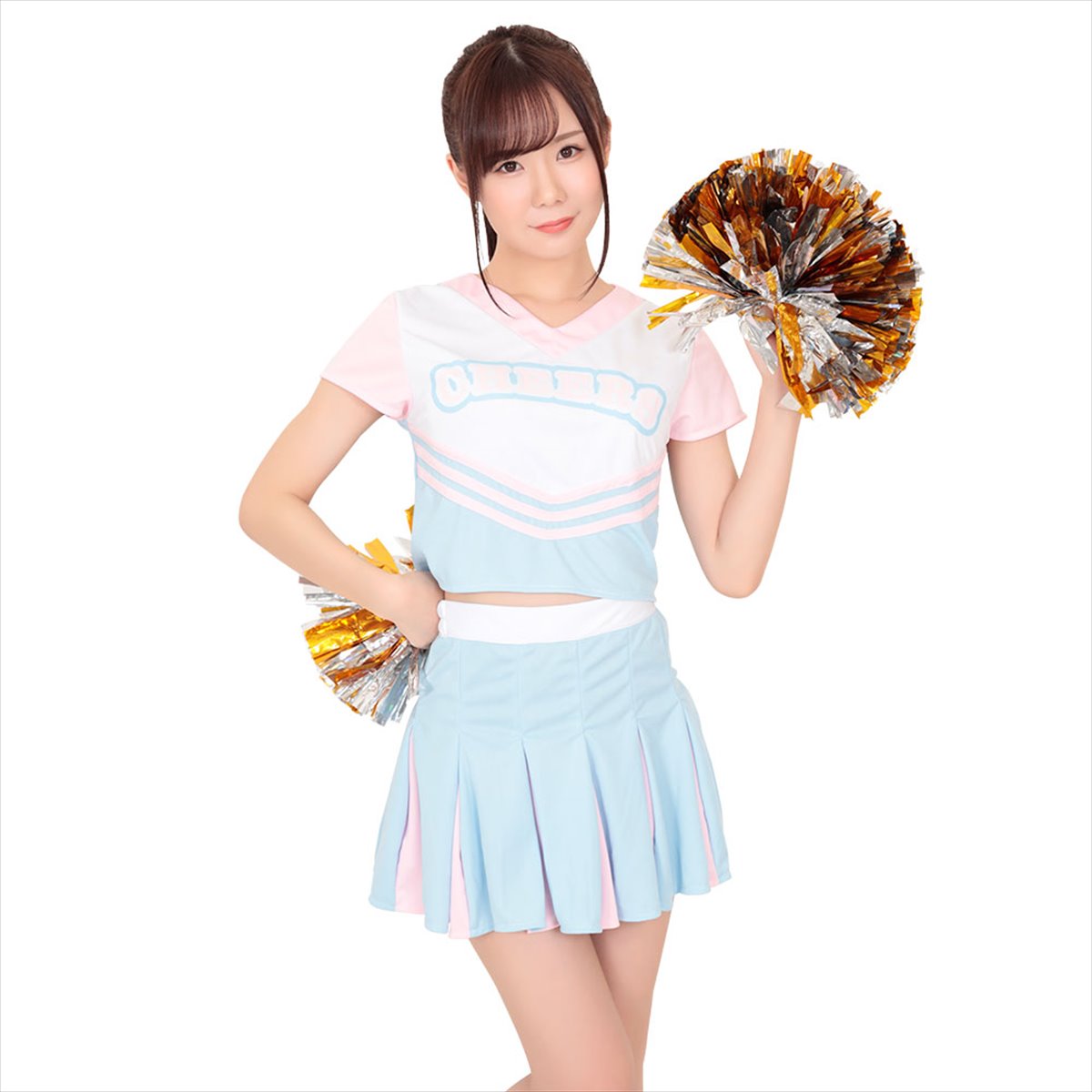 パステルカラーの女の子らしいキュートチアガール。人気のボックスプリーツスカートとぴったりのトップスは女性らしい華奢見えする印象に。可愛さとシンプルさの丁度良いバランスを兼ね備える応援チアガール!