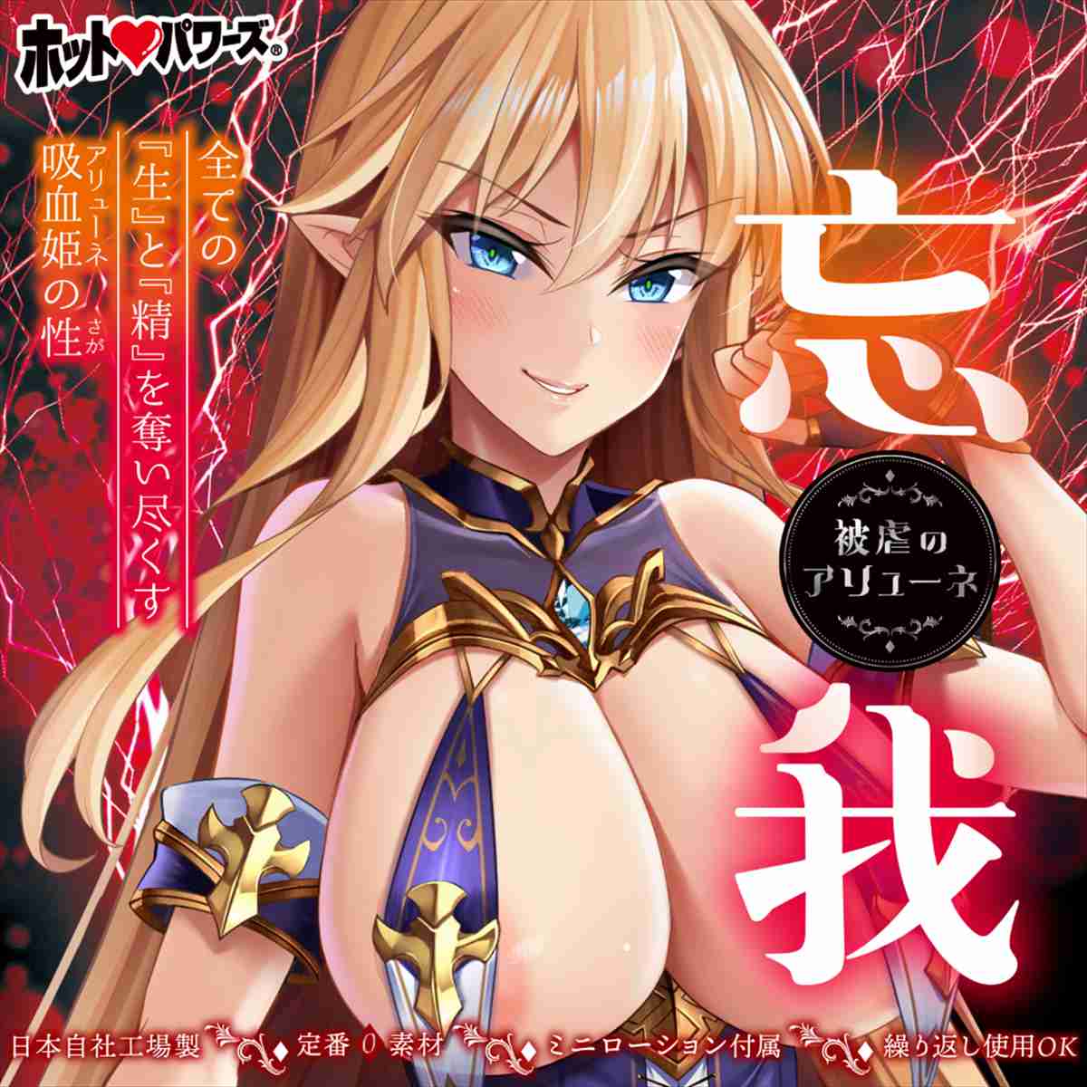 吸血姫(アリューネ)と呼ぶにはあまりにも淫虐姫(ケモノ) 2012年に発売された元祖「被虐のアリューネ」、ヴァンパイアのち〇内を妄想再現した「無限触手突起」が発売直後から大好評。長く続くホットパワーズのヒット商品になりました。その後、自社工場の設備と技術が追い付いた事で、長い年月を経て堂々のリニューアル。「被虐のアリューネ〜忘我〜」では「〜悲恋〜」で人気を博した「無限触手突起」をそのままに、内部に豊かな広がりが出るよう調整して、ヴァンパイア覚醒後の成熟したアソコを妄想再現しました。また、一般流通のパッケージ版では、肉厚や取り回しのバランスに優れたデラックス(中型)サイズを採用。素材はバランスの良い定番(0)を使うことで、挿入後の豊かな広がりのなかに、他のホールでは味わえない「無限触手突起」ならではの独特の刺激を実現しました。かつて絶賛されたヴァンパイアのち〇技、ぜひその身で体験してください。忘我”というタイトルにこめられた想いはなんなのか?それはあなたが直接お確かめください…。”