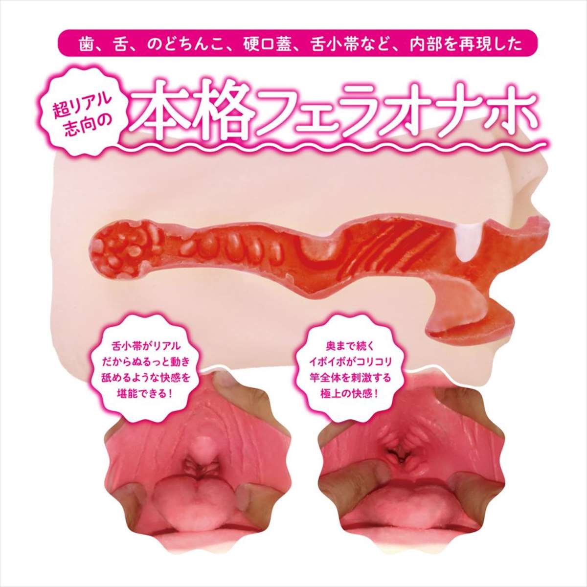 等身大の美人小顔造形オーラルホール!さきちゃんの可愛い小顔に、臨場感を高める唇・歯・舌・硬口蓋などの口腔構造物、オーラル刺激を追求した無次元加工の内部デザインなど、オーラルマニアには堪らないこだわり造形です。見た目から刺激まで、リアルさを徹底追求しました!造形。贅沢な多色成形仕上げとなっており、美白な小顔部分の「肌色」に、唇から口内を彩る「ピンク色」、輝くようなキレイな歯の「白色」と、鑑賞にも充分なハイクオリティー。内部構造もスペシャルな刺激造形となっており、挿入すると肉感たっぷりで包み込む舌に、粘膜が絡み付くような硬口蓋、引っかかるような刺激の口蓋垂、極太ヒダが全体にねっとり絡みつく咽喉部分と、極上体験をお楽しみいただけます。「さき」ちゃんは、舌の存在感が特徴的なペロペロ癒やしタイプ。