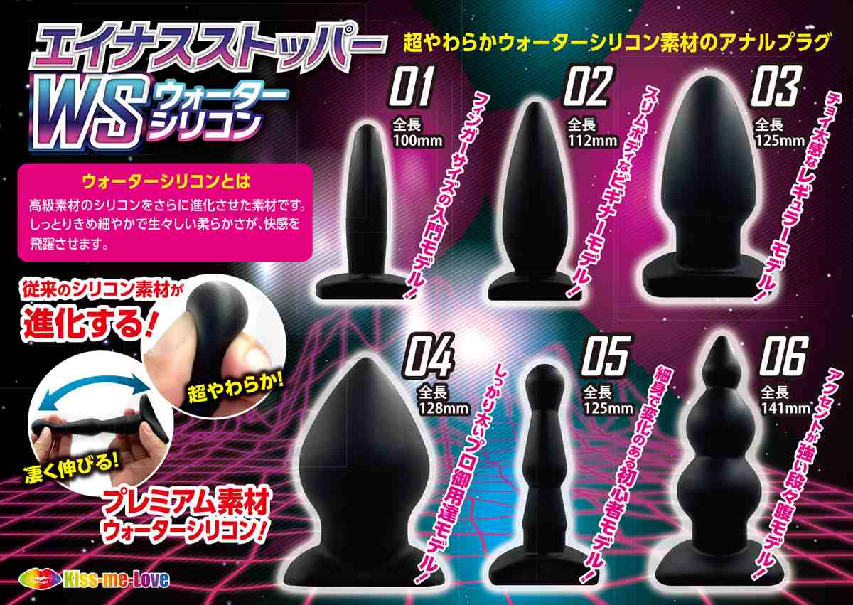 ビギナーからマニアまで楽しめるア●ルストッパーが、最新素材になって新登場!ア●ルの魅力を満足させる、美しいボディライン。その魅力をそのままに、素材をグレードアップしました。シリコンを超える超しっとりで凄なめらかな進化素材、それがこのウォーターシリコン素材です。しっとりきめ細やかな質感に、生々しい生体的な肉感弾力、人体や環境にも優しい安心材料。アダルトグッズを高めるべく進化したマテリアルです。本体デザインは、挿入感を高める流線型のフォルム。底面部分は平らになっていますので、挿入しながらの行動を制限しません。拡張や圧迫などのマニアでアブノーマルなプレイにぴったりなシリーズとなりました。「AN●S」の名の通り、ファナスティックな快感をご体験ください。「03」は、太さ3.7〜5.5センチのストッパー。チョイ太なレギュラーサイズの、手応えのあるマニアな快感です。