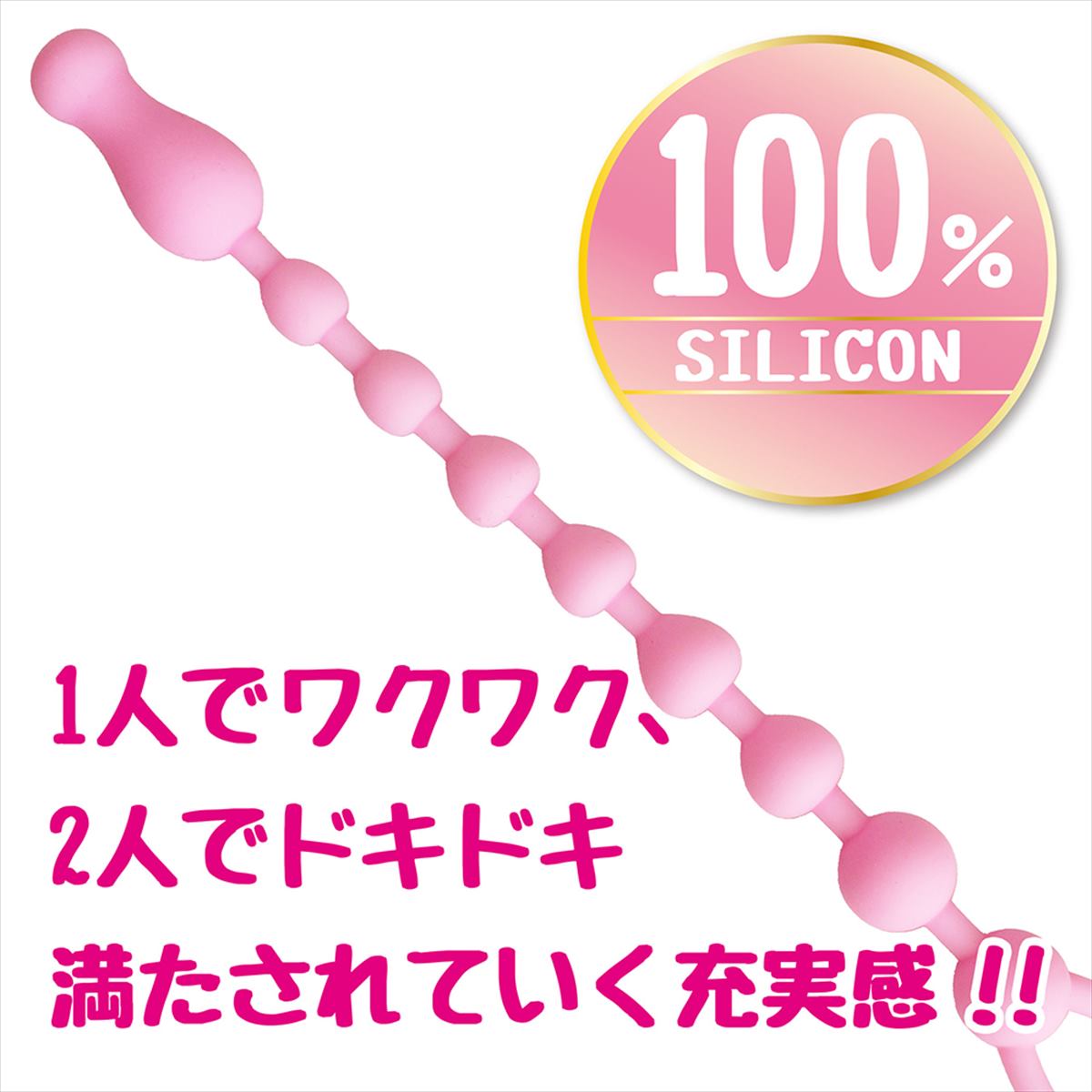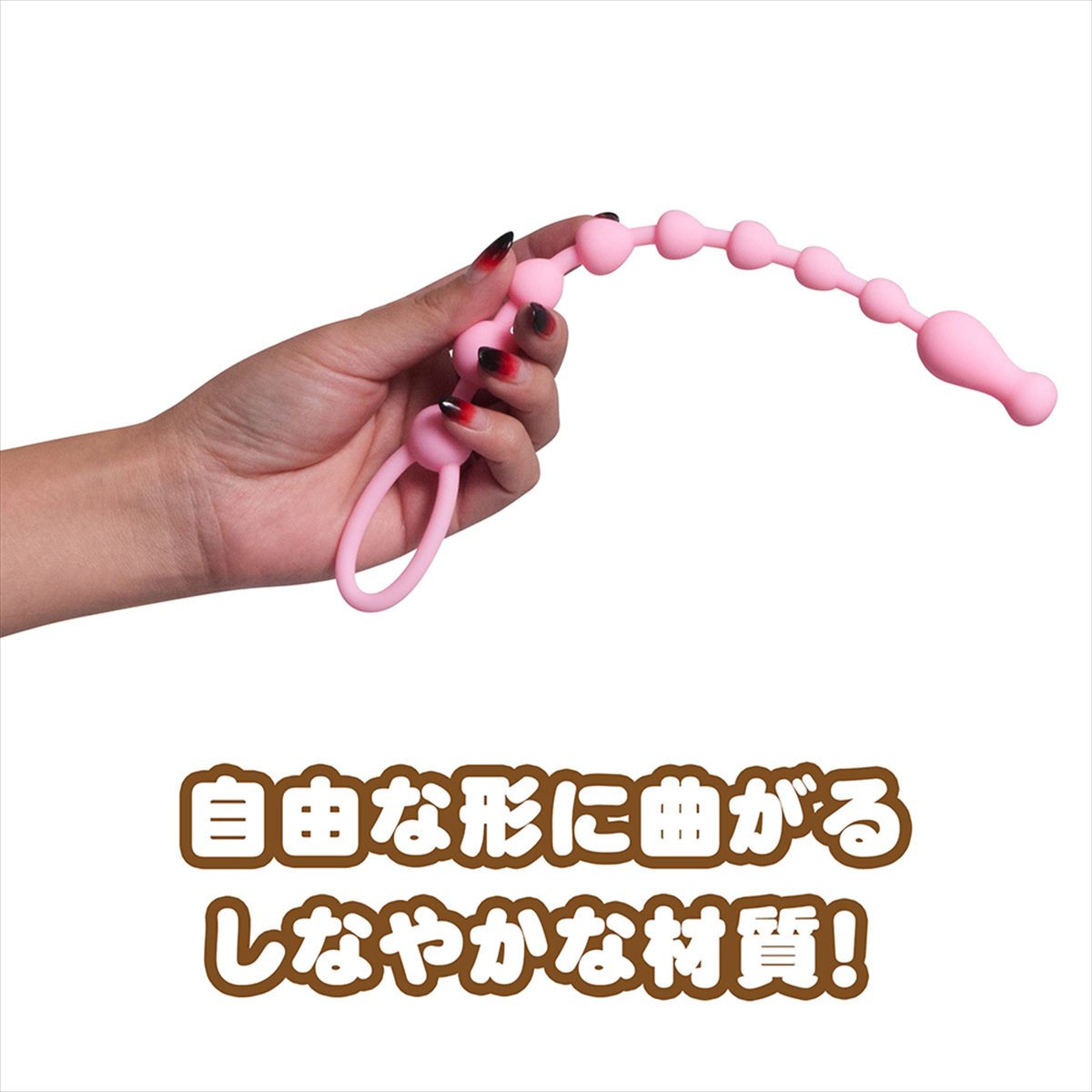 輝く女性の為のシリーズ アムールブリエより、ア〇ルのラインナップが登場しました。あの有名なドーナツのような、ぼこぼこした可愛らしいフォルムは、女性のお○りプレイにぴったり!シリコンで作成した10個のビーズが連なった取っ手付きのビーズです。全長は34cm。先端部は直径2cmと2.6cmの一体ビーズ、続いて直径2.2cmの玉が3連続して、直径1.6cmのビーズが5連続きます。