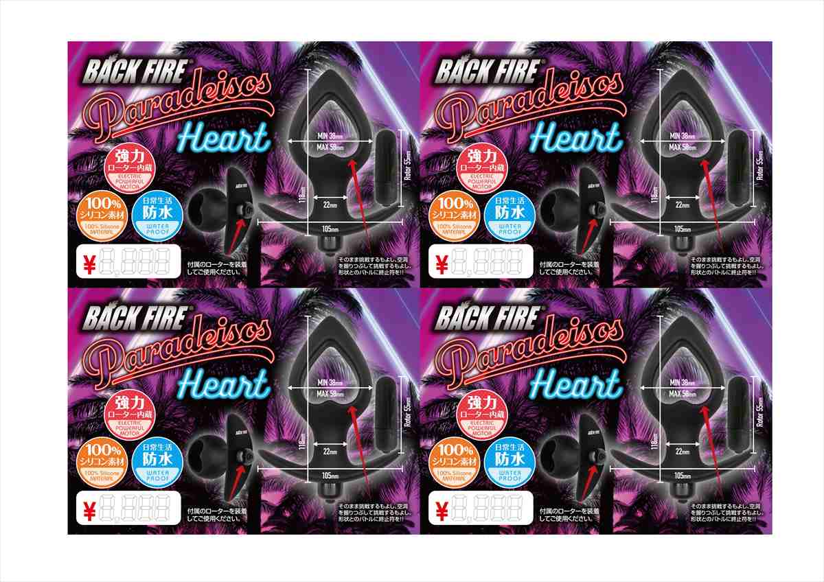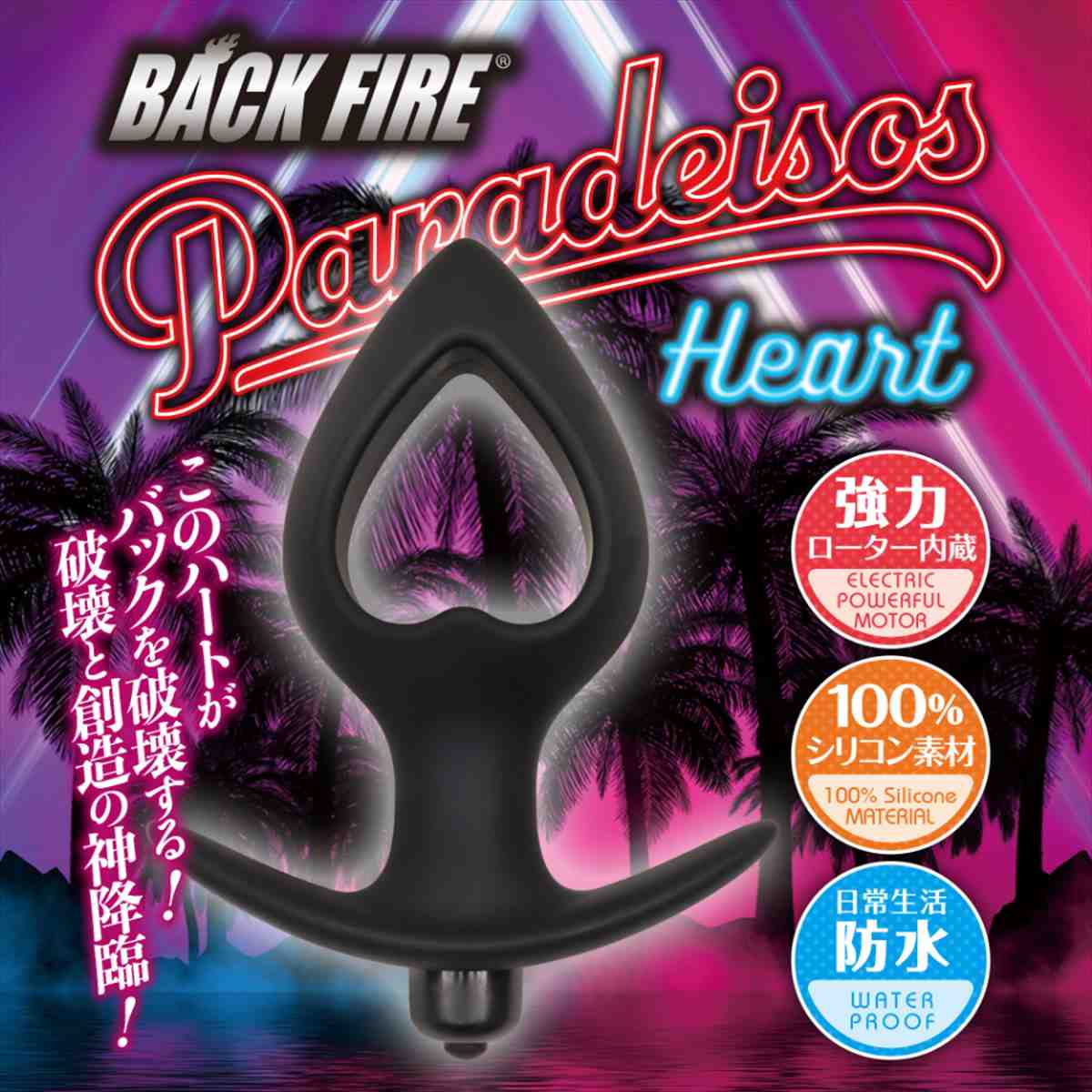 バックファイアーブランドから天国に導くシリーズが誕生しました。その名も「パラディソス」名前の通り、男女問わず強力な振動で驚きの天国体験を味わえます!上質なシリコンを潤沢に使い、100%シリコン製で仕上げた、電動ディルドです。ハートは、ハート型のようなスペード型のようなフォルムで、中央部が大きく空洞になっています。前でも後ろでも使用は可能です。押しつぶすように挿入すると、内部で復元され、内部からの強烈な圧迫と強烈な振動で、驚きの天国体験を味わえます。付属のローターから絶縁紙をとりはずし、穴に差し込んで使用します。防水仕様のため、パッキングがついていますので、電池交換の際は、フタをシッカリ締め付けてください。締め付けが緩いと作動しません。*ローターはシングルスピードとなります。*付属の電池はテスト用電池となります。