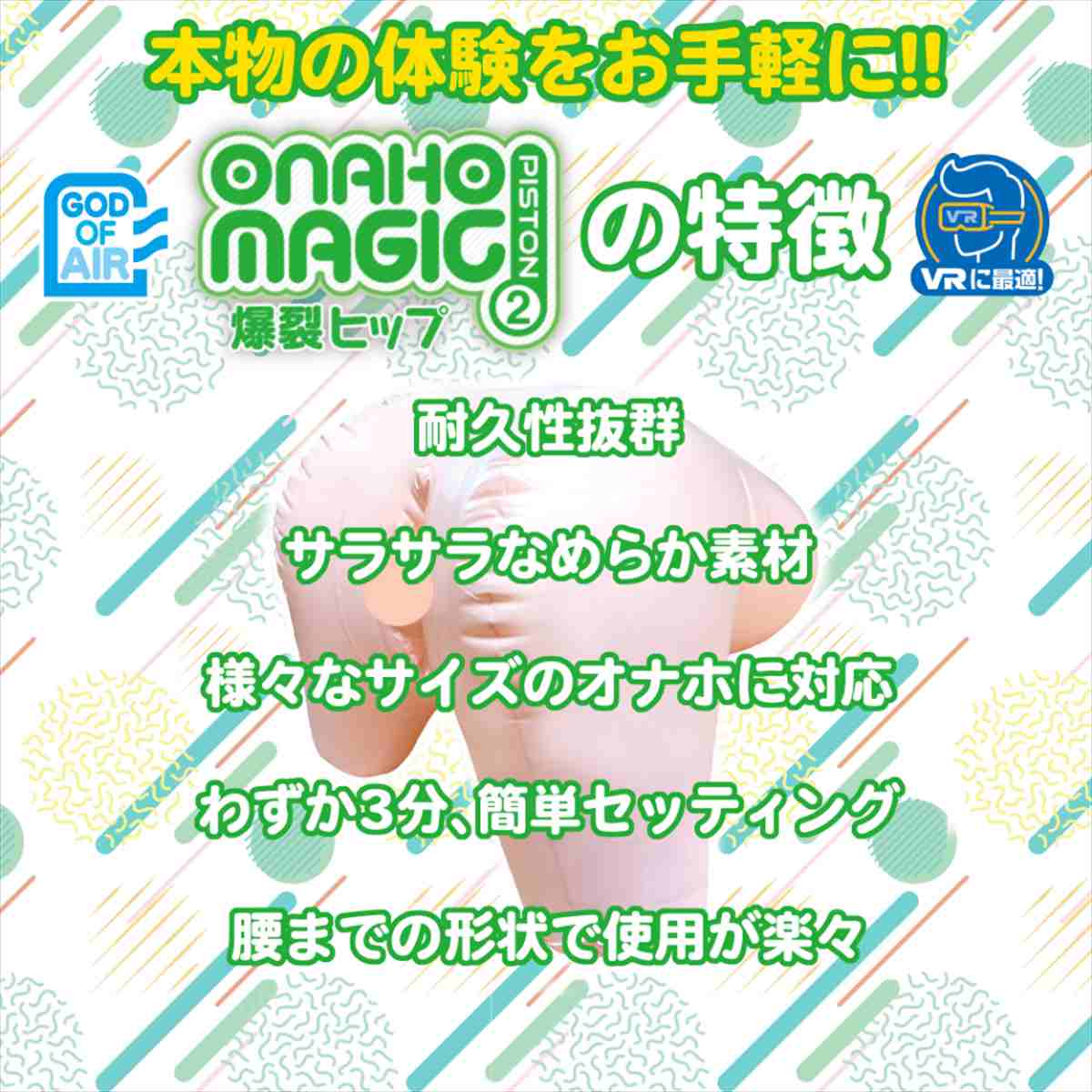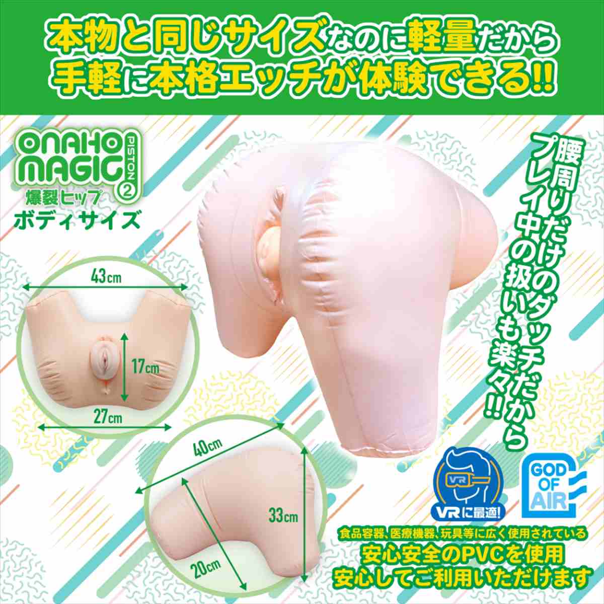 オナホマジックに、リアルサイズのヒップを再現したPISTON2 爆裂ヒップの登場です!本物と同じようなサイズなのに、軽量・折り畳み可能というビニール製の特徴で、いつでも手軽に本格エッチが体験できます。腰回りだけのダッチだから物足りないと思うかもしれませんが、逆に腰だけだから取り回しが簡単で、プレイ中の扱いも楽々です。縦17 深さ25の穴だから、夢の二本差しも可能です。小型から大型ホール、カップホールまで装着可能なので、オナホメーカー各社様のホールに対応可能です。VRと併用して使用すれば、実際のプレイの練習にもピッタリ!!使えば使うほど腰使いがグングン上達します。この商品で練習することにより、心の余裕を生みます。
