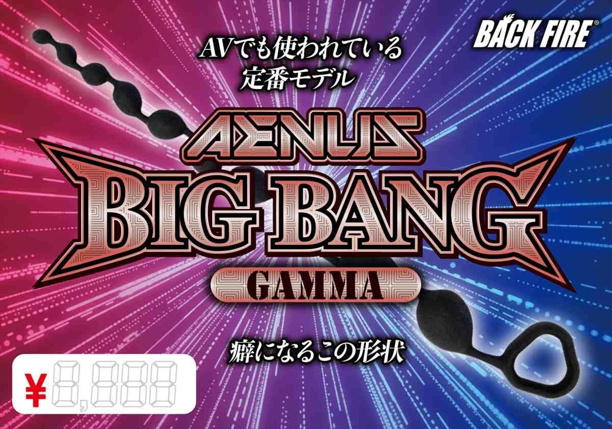 100%ピュアシリコンで作成した、安心安全な、10個のビーズが連なった取っ手付きのア●ルビーズです。初心者からマニアの方まで、「病みつきになる」こと間違いなし!見た目は大きく見えるのですが、計算されつくした形状で、意外に簡単挿入可能です。100%シリコンなので洗いやすさもバツグンです!ビッグバン ガンマは、2個をワンセットにそれぞれのタマを互い違いの方向にセットすることにより、入れる出すどちらも絶妙な刺激が味わえます。全長は33cm。先端部は直径0.6cmと0.8cmの連続ビーズ、続いて直径1cmと1.2cmの連続ビーズ、直径1.4cmと1.6cmの連続ビーズ、直径1.8cmと2cmの連続ビーズ、最後に直径2.3cmと2.5cm。初心者から上級者まで対応できる形状です。差した状態で、ローターをあてたり、そのまま散歩したりと、想像以上にいろいろなシチュエーションでの使用が可能です。一体成型でリング状の取っ手もついていますので、一気に引き抜いてのようなSM的なプレイにも最高です。男女兼用で、Gス●ットを刺激することにも使用できます。一体型の成形で安心です。
