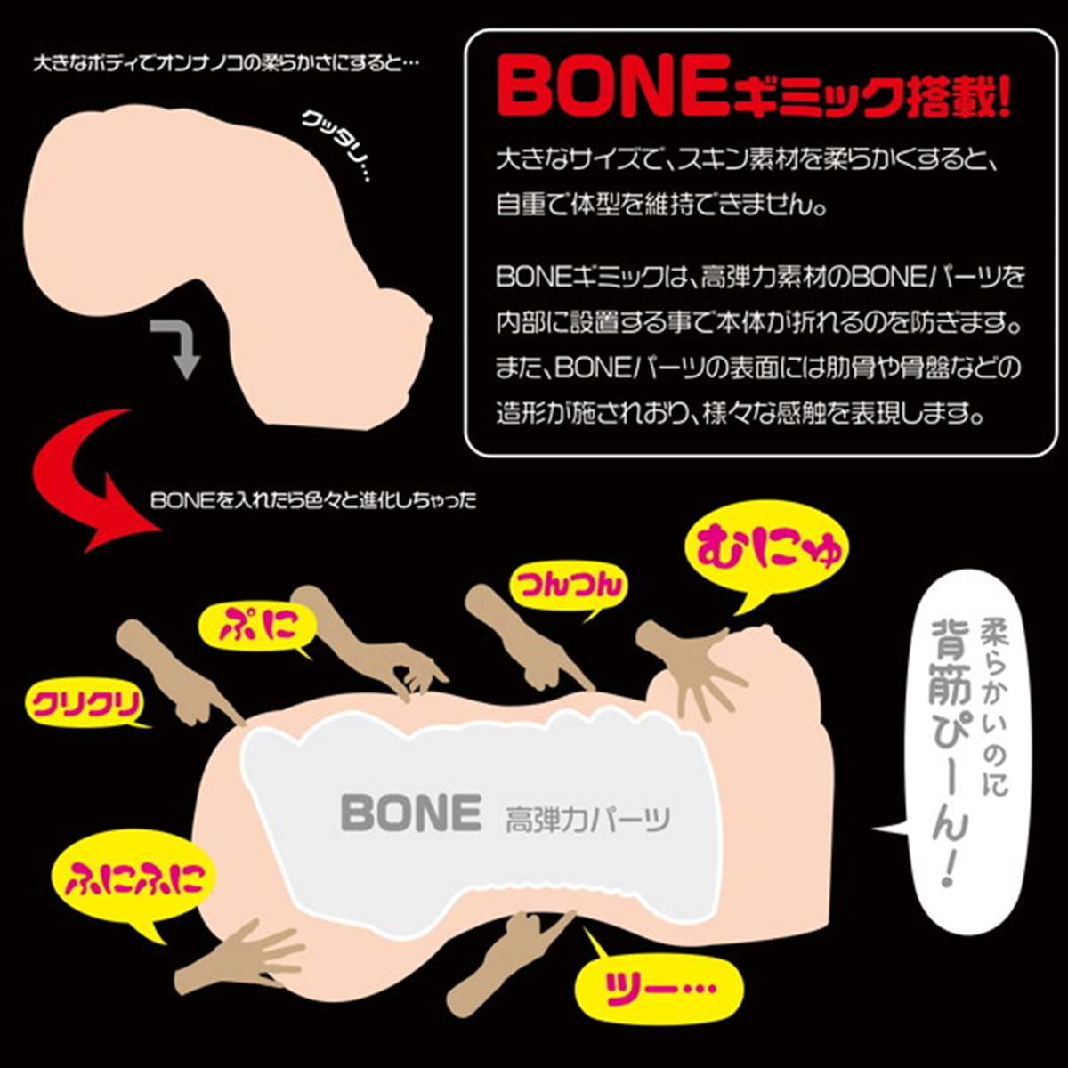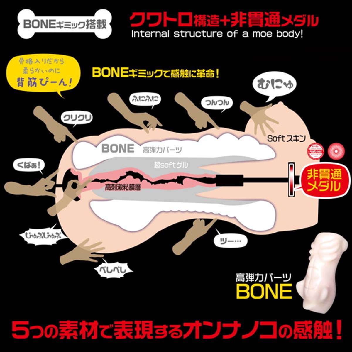 5つの素材で表現するオンナノコの感触!オンナノコの解体新書登場!!触るだけでも楽しめるBONEギミックは侵入を拒む程の高弾力、非貫通メダルと更にボトルパウダーとローションも付属しております!内部には超Softゲルと高刺激粘膜層を採用し内部構造を掻き分ける楽しみを演出します。触っても楽しめるマジックアイズ渾身のNewボディをお試し下さい!!softスキン…ベースとなる素材で、オンナノコの柔らかさにこだわったフニフニの柔らか感触。BONE高弾力パーツ…皮膚の下にある硬い素材で、恥骨や肋骨、骨盤等を表現し、本体が自重で折れるのを防ぎます。超softゲル…オンナノコの中のとろけるような柔らかさを表現!高刺激粘膜層…粘膜感溢れる刺激的な素材は、オンナノコのヒダの感触をしっかり感じ取れます。非貫通メダル…内部の専用溝に装着することで非貫通の吸い付く特性を表現でき、外すことでメンテナンス性が向上します。