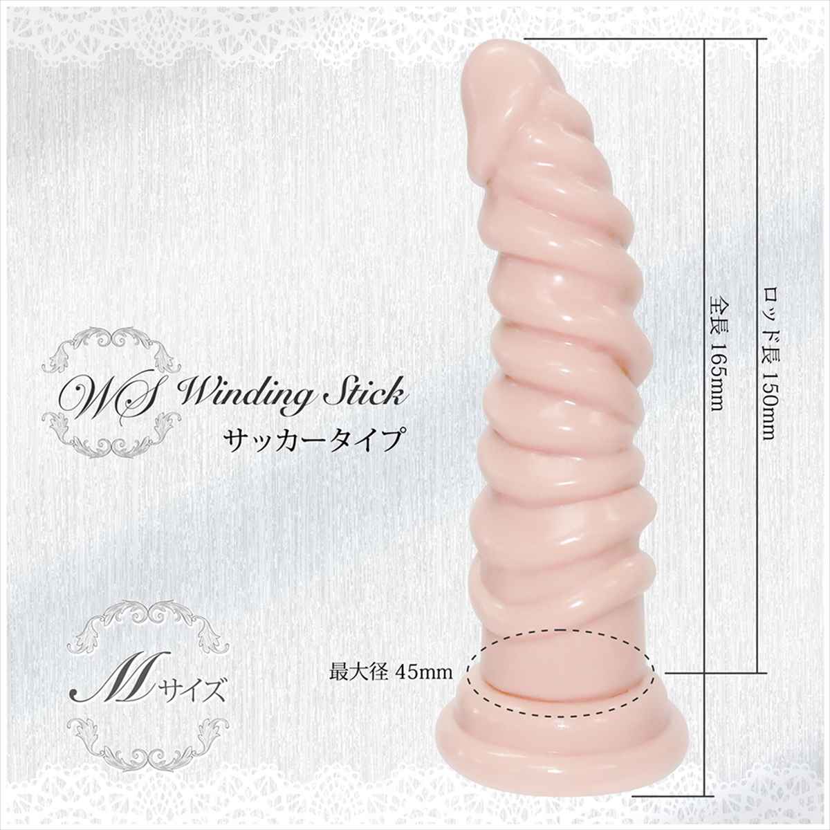 ※この商品はジョークグッズです。その他の目的で使用された場合の責任は負いかねます。純日本製の素材のみを使用したワイディングスティック サッカーMの登場!!ラグジュアリーな衝撃と刺激を体感できる吸盤タイプのディルドです。少し太目な最大径45mmの本体サイズは、リアルなサイズ感でなければ満足できない中級者の方から上級者向けに設計されたサイズとなっております。フローリングや少し固めな場所であれば固定して使用できます!!程よい弾力の日本製エラストマーを採用した本作は、ただリアルな形状では敬遠してしまう方にもおススメな女性向けの商品です!