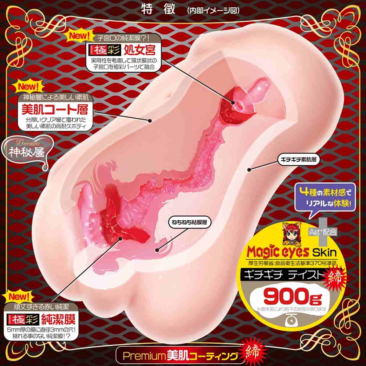 3層構造+極彩の純潔膜を搭載したプレミアム処女宮(バルゴ)HARDが新登場!!クリアの美肌コート層に覆われた美しいボディと5mm厚の膜に直径3mmの穴が通った極彩純潔膜が頑丈に侵入を拒みます。最奥部にも極彩パーツで環状膜を彩った子●口を再現!4種の素材感で構成した(全て厚生労働省:食品衛生基準370号準拠素材使用)贅沢な処女宮PREMIUMHARDを不束者ですが、末永く愛してください!