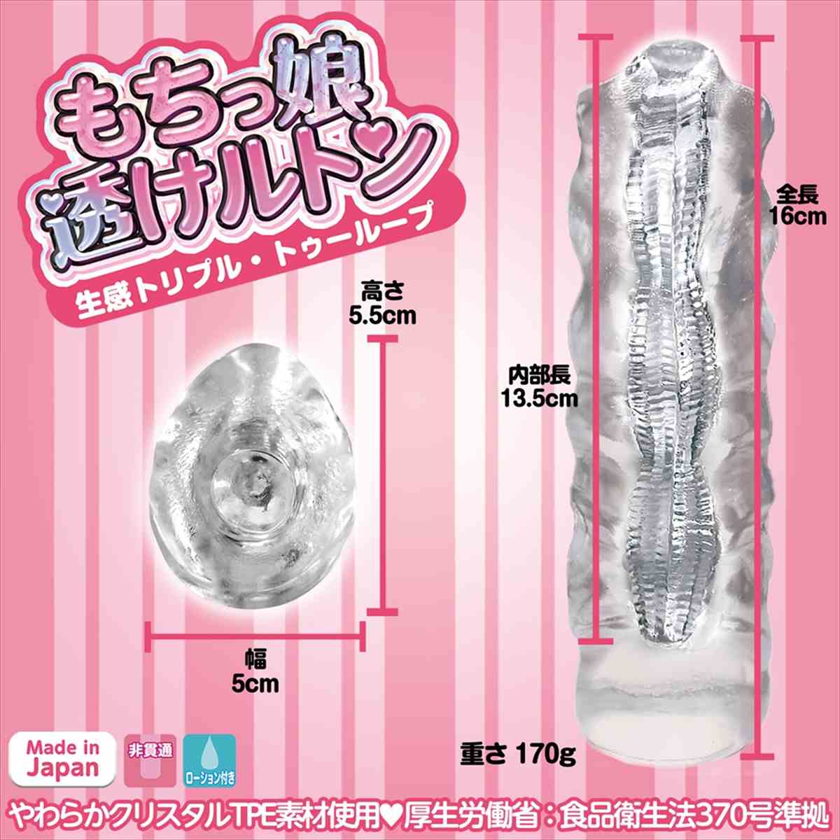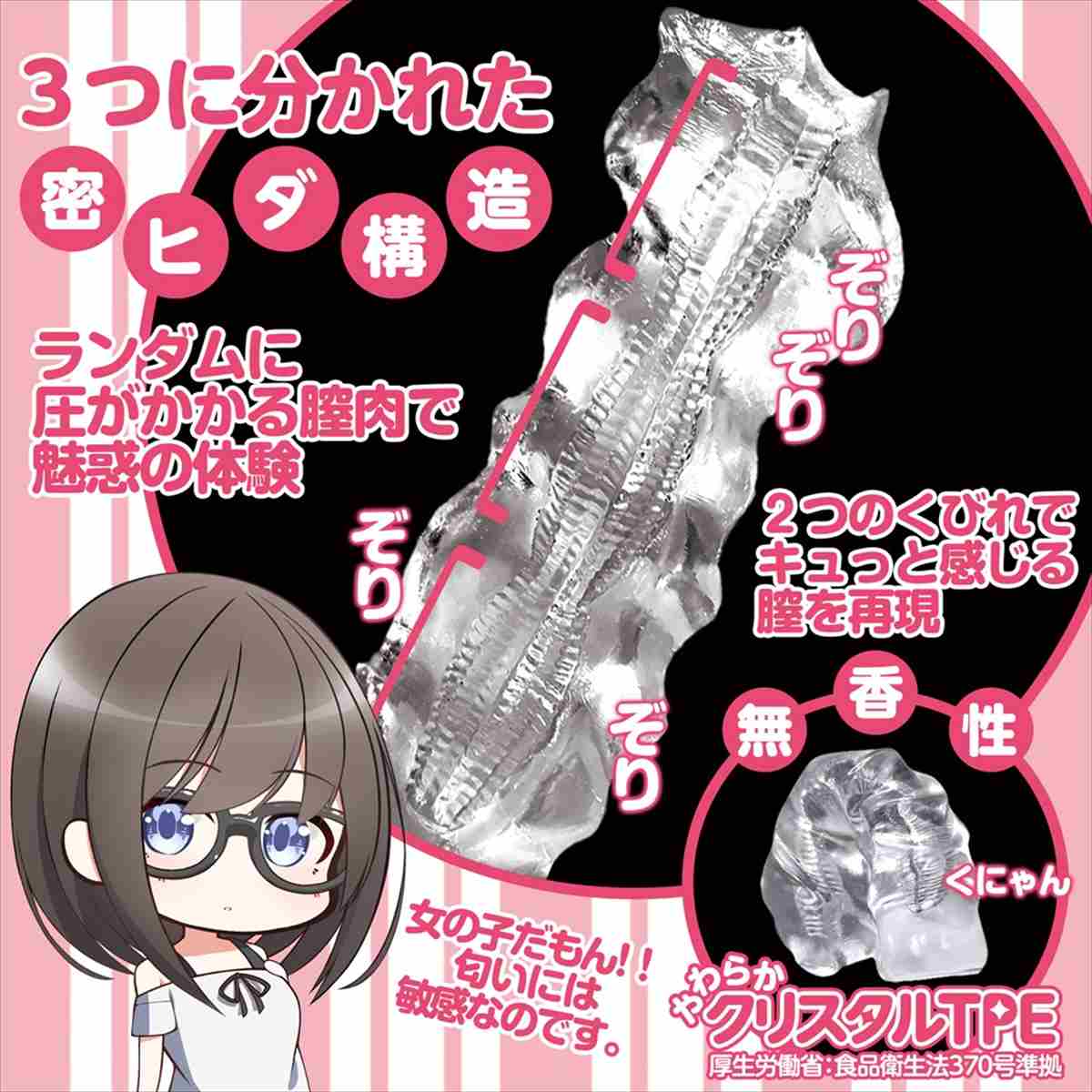 六角形のゾリゾリヒダが三連の波を打つ。170g全長16cmと小ぶりだが13.5cmの内部長となっているので十分楽しめます。オールクリアのボディは入っているところが見えるエチエチ仕様。素材はクリアでも固くない日本製の「やわらかクリスタルTPE」(厚生労働省:食品衛生法370号準拠素材使用)を採用していますので安心してご使用頂けます。
