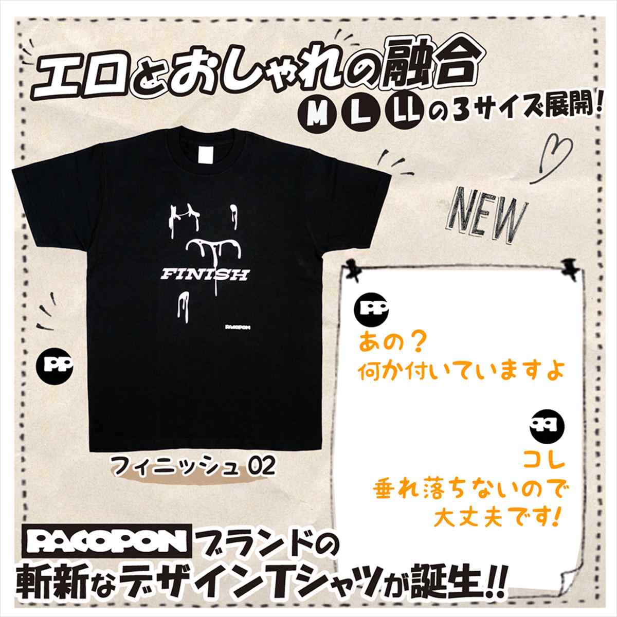 ●エロとおしゃれの融合。PACOPONオリジナルTシャツです。●あれ?何か白い液体が飛び散ってる?フィニッシュ!●サイズはLLサイズです。