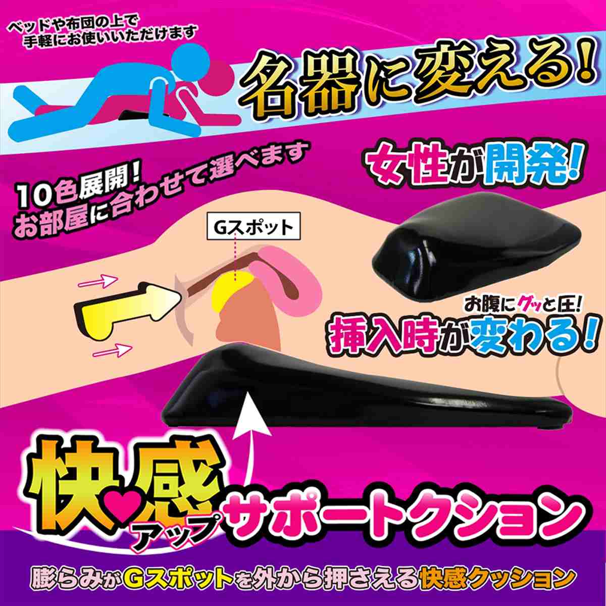クッションの膨らみが、G●ポットを外から押さえる快感サポートクッションです。普段のセックスライフがこの快感サポートクッションで激変することでしょう。「お腹を押さえてセックスをすると、いつもより気持ちいい!」と気づいた女性が開発!膨らみの角度、高さが女性のお腹にグッとフィット!膀●から子●を自分の体重で押し上げ、更に後ろからの寝バック挿入によりG●ポットを刺激!