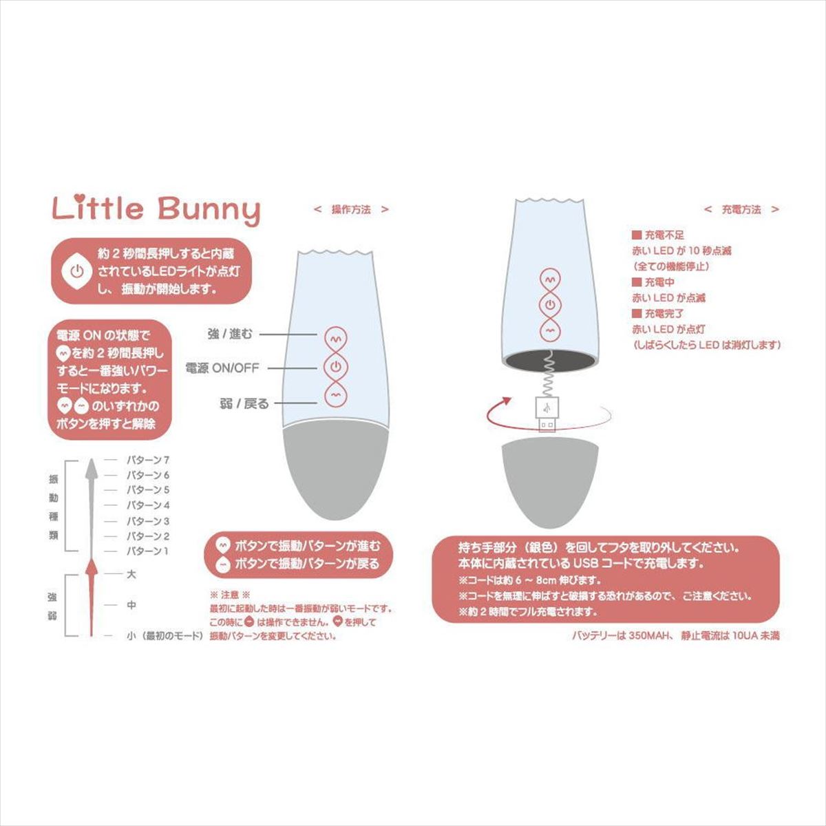 Leten Little Bunny MilkyBlue (レテン リトルバニー ミルキーブルー)は、本体にUSB充電コードが内蔵されているキュートなウサギをイメージしたバイブ。なめらかなボディラインが美しく、キュートなウサギをイメージしたバイブレーターです。本体の先端と子機の二か所に、パワフルモーターが内蔵されいますが、動作音はとても静かな設計です。