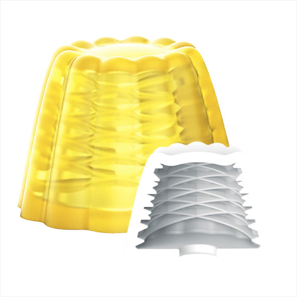 形状が異なる4種類のジッタ ジェロジェロシリーズは、カップ型の容器に入った、まるでゼリーのように柔らかい素材を使用したプルプルとしたオナホールです。ジッタ ジェロジェロ ビトウィーン ザ シーツ(イエロー)は、とても柔らかい素材を使用しており、内部は細ヒダがクロスしたメッシュ構造をした非貫通タイプ。カップのまま冷蔵庫で冷やしたり、適温のお湯で温めてからお使いいただくと、また一味違った快感をお楽しみいただけます。尚、ご使用時には付属のローションをお使いください。