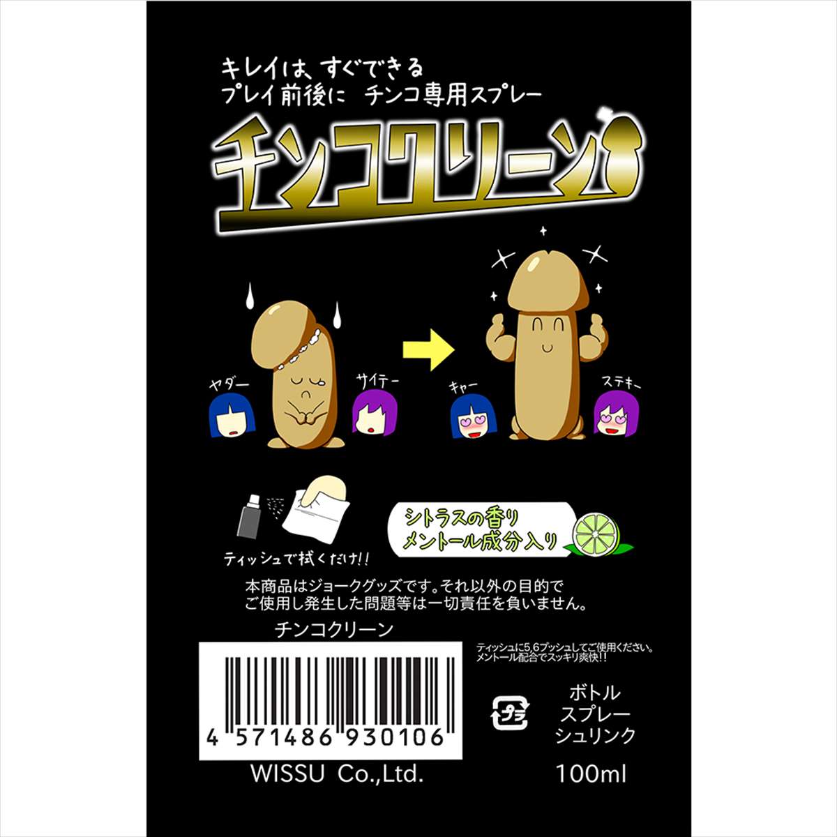 キレイはすぐできる。急なプレイ前や長く持たせたい時に!シュッとしてふきとるスプレータイプのクリーナー●ふきとりタイプ●爽やかシトラスの香り●メントール成分入(さっぱり)●ティッシュに7〜8プッシュして感部をふきふき●プレイの前後に簡単にアソコを清潔に●100ml●日本製