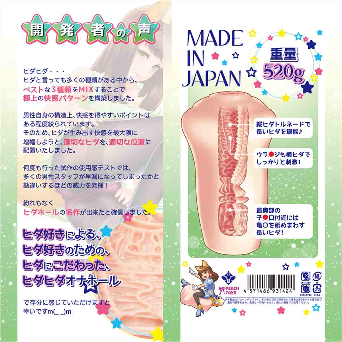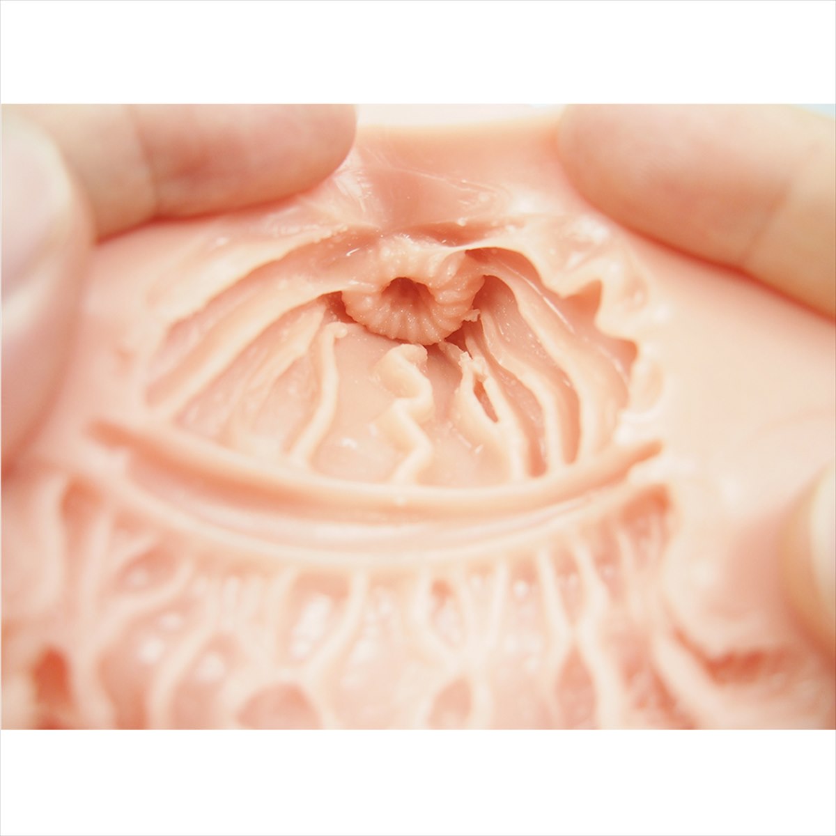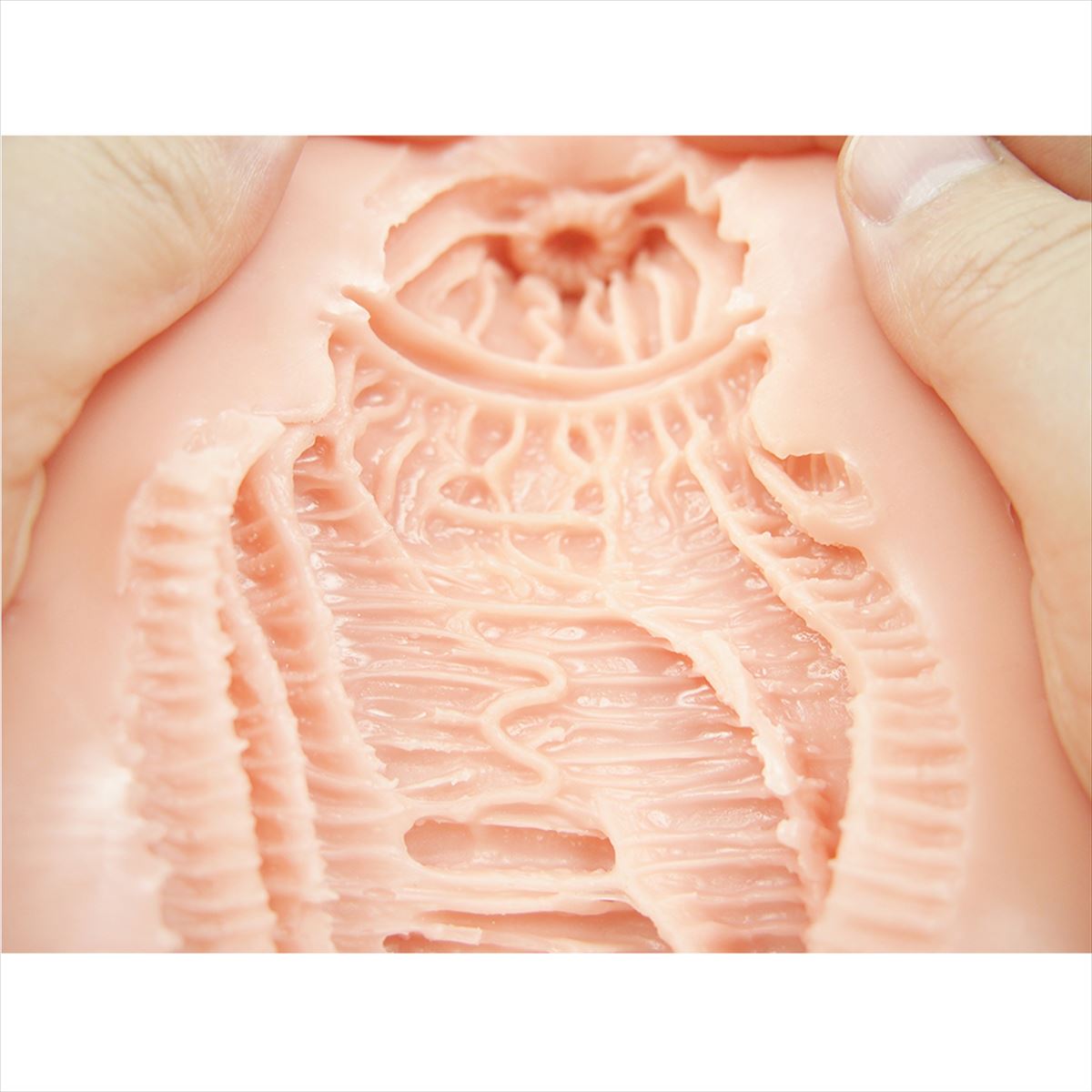 ヒダ好きによる、ヒダ好きのための、ヒダにこだわった、ヒダヒダオナホール「ヒダヒダバキューン!」前半は、縦ヒダトルネードからの、ウ〇スジ刺激の横ヒダ。激狭ゾーンで締め付けられたら、最奥部に位置する子○口付近には長めの亀〇をナメるような縦ヒダを配置。これでもか!と言わんばかりにヒダを並べてみました。柔らかい素材で、ヒダが絶妙に絡みつくようになっております。