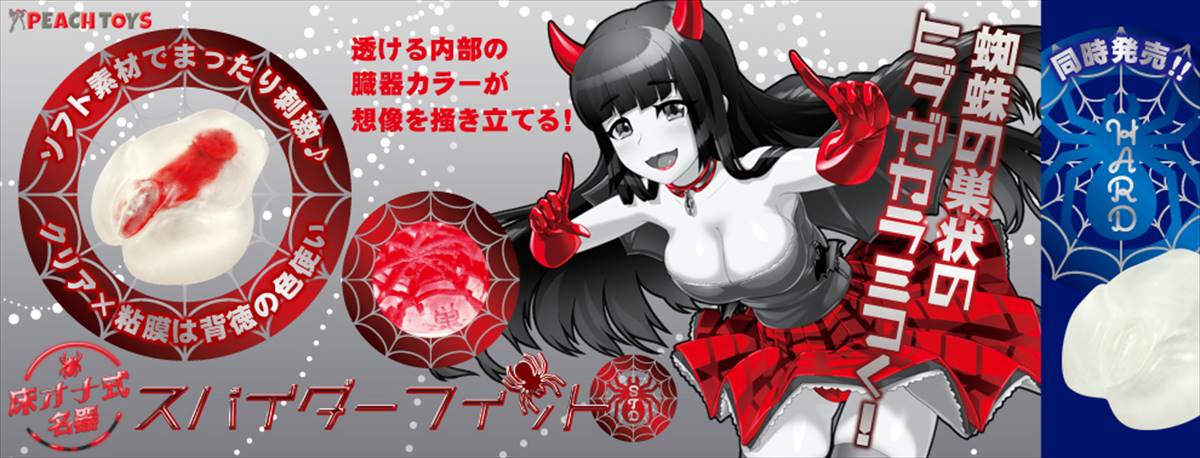 床オナ式名器シリーズに「スパイダーフィット」が登場!ワイドプレート構造と反りあがったフォルムでしっかりフィット。亀〇全体を包み込む横ヒダに、長い縦ヒダが絡みつき、ネット状のスパイダーヒダで縦横無尽に責め立てる!腰を少し動かすだけでもしっかり刺激!長期間S〇Xしてない蜘蛛の巣が張ったオンナノコの興奮を体験しよう!ハードはオールクリアカラーで硬めの素材。しっりとした弾力と刺激でハードな床オナに対応。