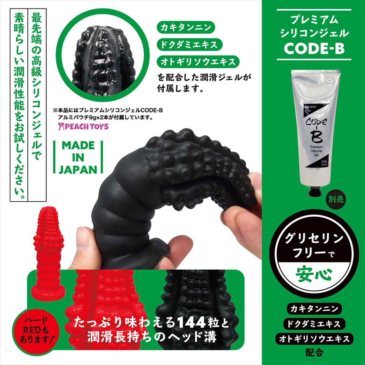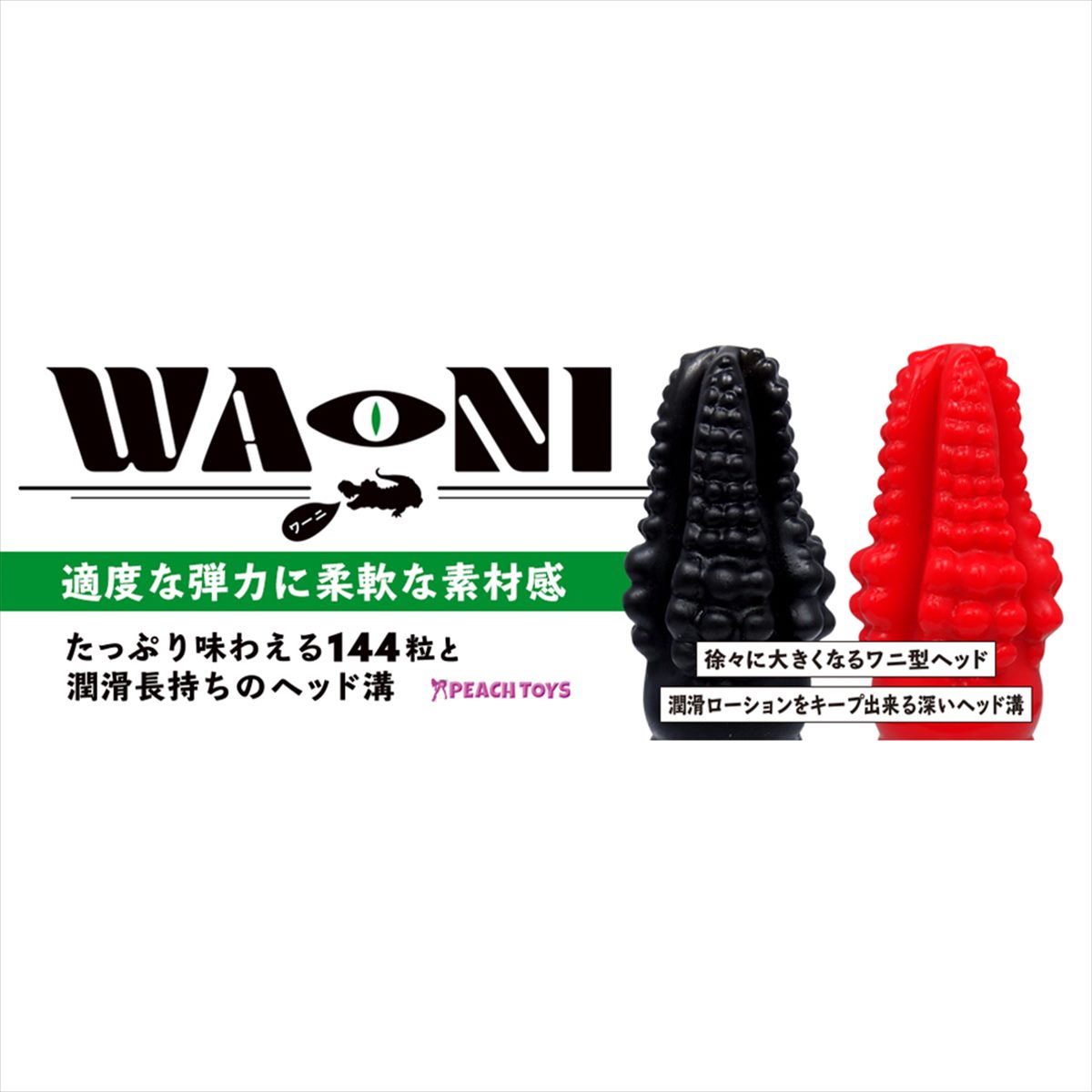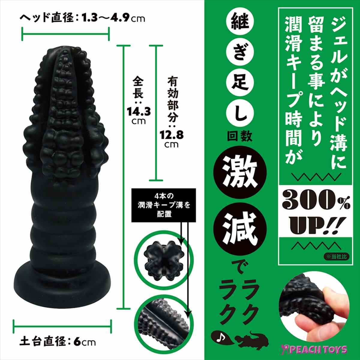 もう面倒くさくないんです!!ローションの継ぎ足しの悩み解消!!潤滑キープ時間300%アップのバックディルド「WA-NI(ワーニ)」の登場です!!「乾きにくいローションを使っても、プレイ中の継ぎ足しが面倒・・・」との声に応え、深いキープ溝を4本配置し、潤滑ローション溜まりにより、継ぎ足し回数激減。名前の由来にもなった徐々に大きくなるワニ型ヘッドは、前半はスタートしやすい直径1.3、中盤はググっと押し上げる直径4.9、初級者から上級者まで満足できるサイズ。たっぷりと味わいたい144粒は、先端から中盤にかけて段々と大きな粒。●スタンダードBLACKは、ソフトな素材で初級者から上級者にも使いやすい柔らかさ。弾力抜群の柔らかい素材で、いつでもプニプニと触っていたくなる弾力です。●プレミアムシリコンジェル「CODE-B」(9gアルミパウチ)2本付属●素材:PVC●安心の日本製