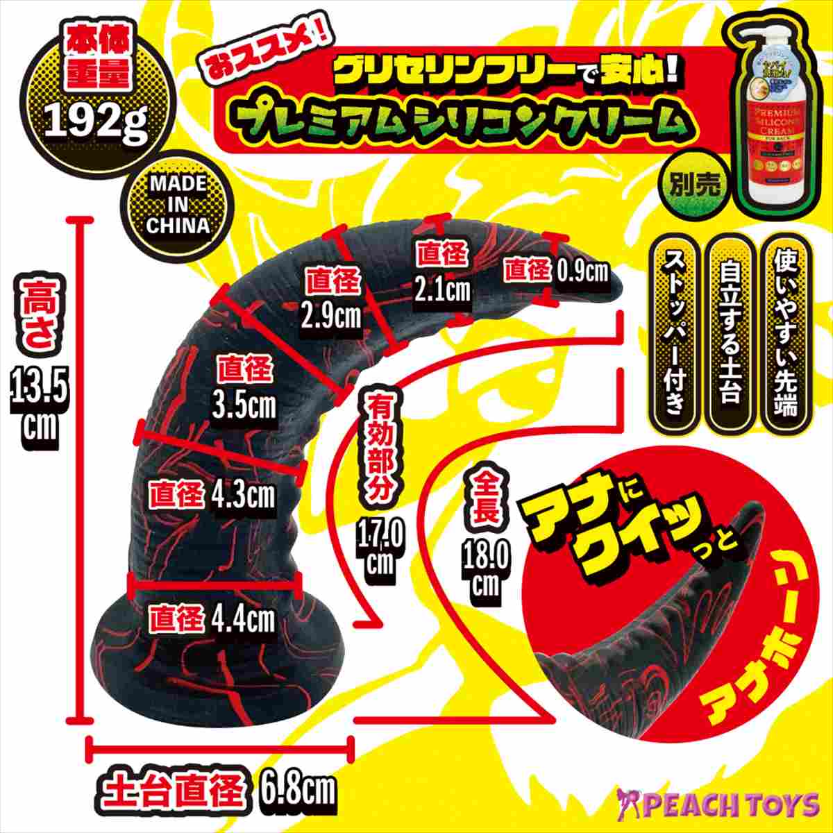 『穴にクイッっと!このカタチ』「アナホーン180(イチハチマル)」角のようなカーブ形状のディルドの登場です!使いやすい先端と、絶妙なボコボコカーブでポイントに直撃!100%シリコン素材でべたつかず、自由自在に曲がる弾力!自立する土台!ストッパー付き!※吸盤付ではありません。柔らかい弾力で、穴に優しくフィットします。最大直径44、有効部分は170。ミドルタイプの全長180。●素材:100%silicone●MADE IN CHINA●おススメ潤滑剤【別売】グリセリンフリーで安心の「プレミアムシリコンクリーム」☆その他の「アナシリーズ」も好評発売中です!!『穴にグルグルこのカタチ』:「アナグル150(イチゴーマル)」黒いネジネジ形状のディルドです!『穴にプスッとこのカタチ』:「アナプス190(イチキュウマル)」キャラメル色の6段形状ディルドです!