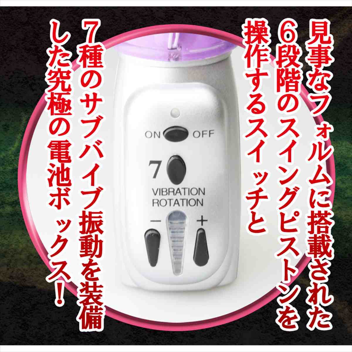 上下伸縮ピストン+スイング+2連パール+超振動!全てを兼ね備えた最強バイブ!それが「龍爆」だ!うねりながら伸縮する、まさに昇竜が如きアクションは圧巻!!上下左右に暴れ狂う龍撃にリアルを超えすぎた快感がある!6段階のパワー調節と7種のサブバイブパターン搭載のドラゴン!!