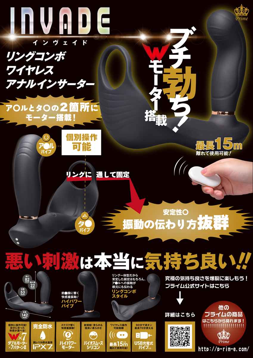 ア○ル+玉部分の2箇所が振動するWモーター搭載、リングに通して装着するから安定性、振動の伝わり方も抜群のワイヤレスローター。リモコン動作距離も15mあり、しかも本体部分は完全防水性能(IPX7相当)なので場所を選ばずアクティブに楽しめます。素材も滑らかさと柔らかさが特徴的なバイオスムースシリコン採用なので装着時のストレスも大幅にカット。高性能・高品質に実用性と使用感をしっかり兼ね備えた高次元ア○ルインサーターです。本体搭載のリチウムイオンバッテリーは90分の満タン充電で最長70分使用可能。(※使用環境により大幅に増減する事が御座います)