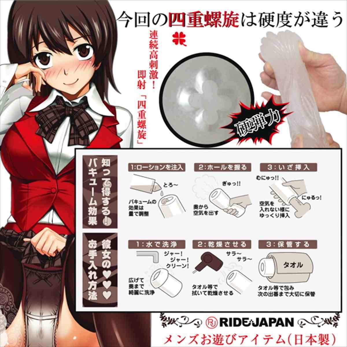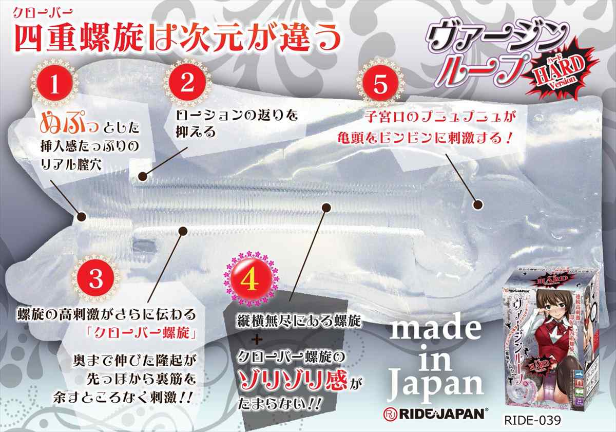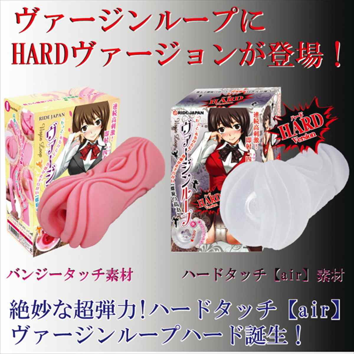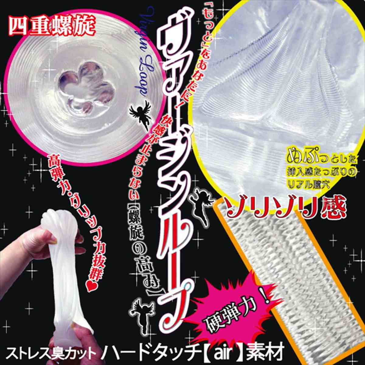 ヴァージンループにハードヴァージョンが登場!硬弾力『ハードタッチ【air】』素材の四重螺旋!ぬぷっと挿入しやすく高刺激のゾリゾリ感がたまらない!この硬弾力でのクローバー螺旋ゾリゾリ感を余すところなく体験してみて下さい!