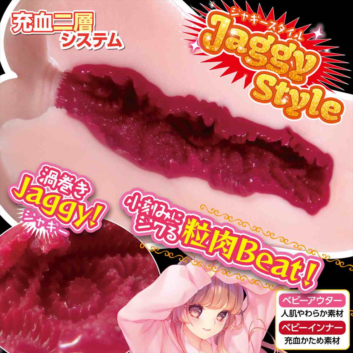 Jaggyにイこうぜ!ぐるぐるギザ粒、新感覚!くちゅくちゅ柔らかく程よいギザり触感。充血二層システム、インナーはプリプリハード素材、アウターは人肌やわらか素材。小粒な渦巻きギザギザ(Jaggy)が絶妙に気持ちイイ!小刻みにジワる粒肉Beat!痺れる快感ここにあり!