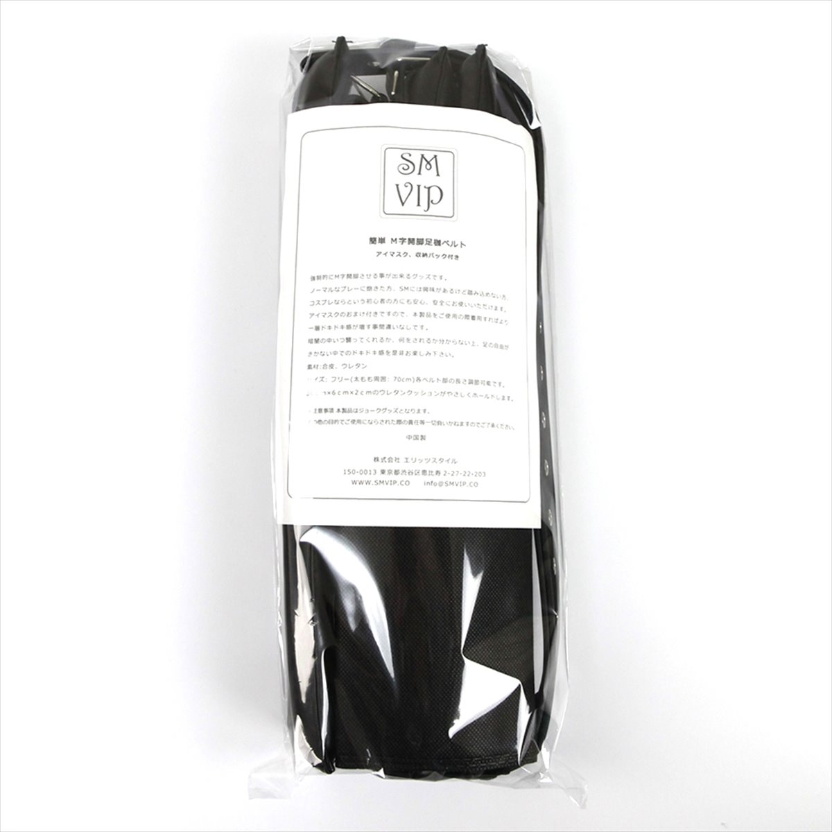 強制的にM字開脚させることができるグッズです。アイマスク付で本製品をご使用の際着用すればより一層ドキドキ感が増すこと間違いなしです。サイズ:フリー(太もも周囲70cm)各ベルトの長さ調節可能です。36cm×6cm×2cmのウレタンクッションがやさしくホールドします。